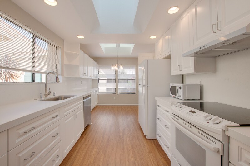 Property Id: 700022 Immediately Available! This huge, newly renovated, immaculate 2br/2ba twin-home (1677sf) has luxury vinyl plank floors throughout with new quartz kitchen countertops. It is freshly painted, has vaulted ceilings and 5 skylights to let the sun pour in, keeping it sunny and bright. This La Jolla Alta home is single-level, private and in a quiet neighborhood. There are two spacious bedrooms with a beautiful front courtyard and a large back patio with a fenced yard. Other features include an oversized 2-car garage, A/C, full-size washer and dryer, refrigerator, microwave, dishwasher and fireplace. Gardener is included. Access to the HOA's 5 lighted tennis/pickleball courts, 2 swimming pools, spa, fitness center, library and party room. Small dog allowed upon approval, no cats, no smoking. Owner pays HOA & gardener. Tenant pays all utilities and any additional parking space fees.