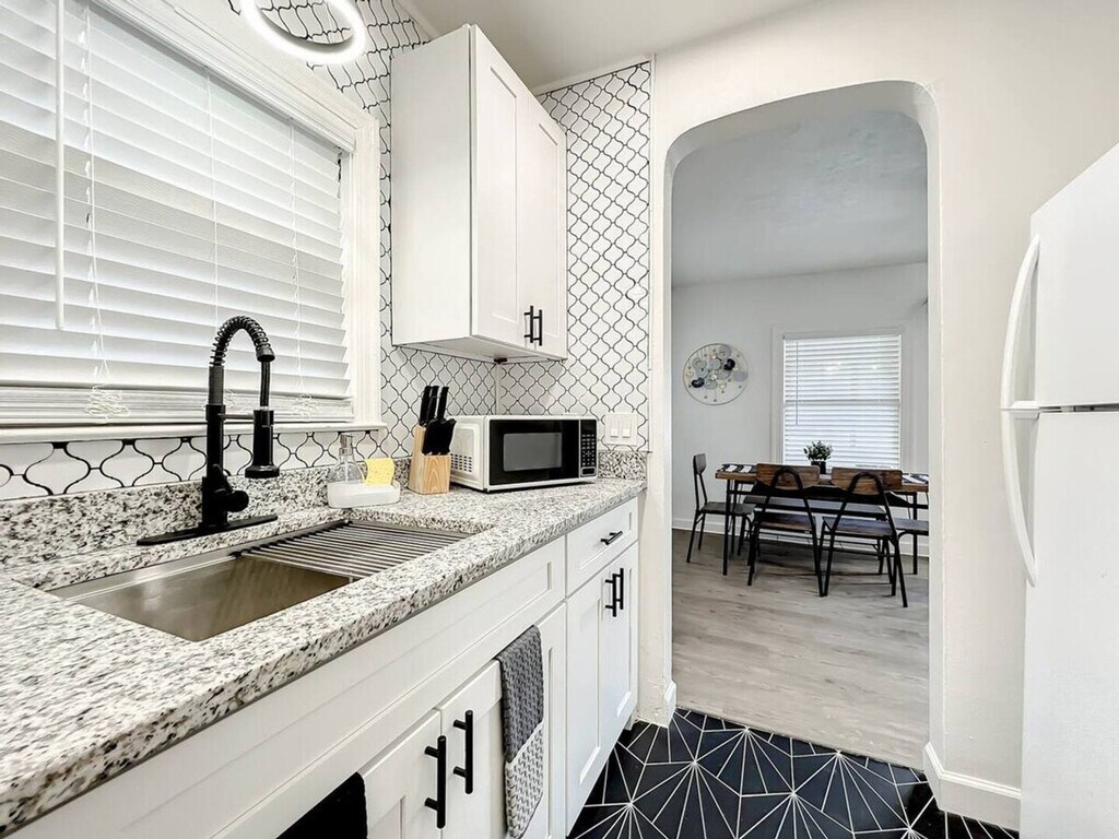 Welcome to this budget-friendly 1-bedroom retreat in Orlando, perfect for solo travelers, couples, or small families. This cozy and private space is pet-friendly and located near top Orlando attractions, offering a charming escape without the high price tag. The unit is part of a triplex, sharing walls and ceilings with another unit, and provides parking for up to 2 cars in a shared space. Step into this inviting 1-bedroom unit, thoughtfully designed to provide a warm and comfortable atmosphere. The spacious bedroom offers a restful night with soft linens and ample storage. Freshen up in the private bathroom, stocked with essential toiletries and plush towels. The dining area is perfect for savoring home-cooked meals, while the fully equipped kitchen includes a two-burner stove, deep fryer, slow cooker, microwave, and fridge. Relax in the cozy living room, which features a daybed, and enjoy the convenience of shared laundry facilities with other guests. Pets are welcome with a fee of $60 for each small dog. A maximum of 2 dogs per stay is allowed, and all dogs must be declared in advance. Parking is limited to 2 compact cars per unit. Centrally located with easy access to major roads and nearby attractions, this cozy getaway is the perfect base for exploring everything Orlando has to offer. Just 5 minutes away is Lake Conway, known for its crystal-clear waters and outdoor activities. Cypress Grove Park, approximately 7 minutes away, offers picturesque walking trails and gardens. The SODO Shopping Center, around 10 minutes away, provides a mix of retail stores and dining options. The Hourglass District, about 8 minutes away, is known for its trendy vibe and eclectic mix of eateries and shops. Additionally, Orlando Health/Arnold Palmer Hospital is approximately 10 minutes away, offering top-tier healthcare services. Quiet hours are observed between 8:00 p.m. and 8:00 a.m. Smoking inside the property is strictly prohibited and will result in an automatic complaint. Check-in is at 4:00 PM and check-out is at 10:00 AM, with late check-out potentially resulting in additional fees. A security camera is installed outside near the entrance for safety and complies with privacy policies. Pets must be house-trained and non-aggressive, with a crate required if left alone indoors and a leash required when outside. Pets are not allowed on furniture, and owners are responsible for cleaning up after their pets both indoors and outdoors. The property follows a rigorous cleaning and disinfection process after every stay. Windows do not open, so please do not attempt to force them open. Lock all doors when leaving the property and do not move furniture. [SI]