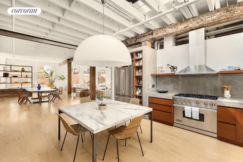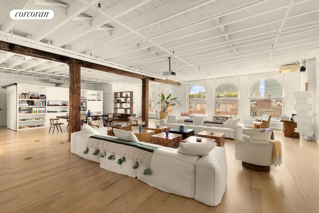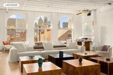 This quintessential classic Soho artists full floor 4000 SF sensational state of the art loft has been transformed into a large 2 bedrooms, without forgetting the incredible history of this important, elegant and sunny space. Located in a beautiful 1920 - 6 stories red brick building at the crossroads of Little Italy, Chinatown, Soho and the Lower East Side, this property has that incredible design you have been looking for, as in a location that is hard to match. Entering from the privacy of a discrete key locked large elevator (with virtual doorman and cameras in the apartment), one is transported to an astounding 38ft x 39ft entertaining LR with 5 oversized south facing windows allowing for streaming sunlight all day, as Little Italy and skyline views. This spacious, fully furnished area features 4-plank ash hardwood floors with custom inlaid up lighting, highlighting the historic beamed ceilings and original wood columns with over 13ft soaring ceilings. There is a large dining area with seating for 10, as a home theater for cozy movie nights.Exposed brick enhances the atmosphere of its cool downtown vibe. Off the LR, a sleek custom chefs eat in kitchen, which has an abundance of cabinetry and cement counter tops and is equipped with a stainless-steel GE refrigerator, full sized wall Viking 6 gas burners stove top/oven, with a Zepher vent out hood, and Fisher & Paykel 2 drawers" dishwasher, as a large skylight. This extraordinary space has a West wing, which has a as sperate powder room and full-sized vented laundry room with Whirlpool W/D & sink, followed by a large 2nd BR, with ensuite custom marble bath with Waterworks fixtures. A Home Office for 2, completes this great scale wing.The Primary Bedroom Suite East wing is impressive with its oversized sleeping quarters, king size bed, his & hers dressing corridors with custom made walnut closets perfectly fitted, leading to a stunning 5 fixture marble spa-like bath (walk in steam shower, as separate tub and WC). This sprawling home is equipped with multi zone air conditioning (4), CAT 6 technology, an abundance of storage including an enormous walk in entry closet (where you could store bikes, as a large household storage closet. All closets" interiors are wood fitted, with every dream clothing divider you can expect in a luxury home.Everything has been done and furnished, beyond expectation. The location could not be more unique where old bohemia meets rarefied state of the art living. At the corner of Mulberry and Grand Streets exciting fashion, entertainment and dining opportunities await you. Convenient to grocery stores, shopping, world class dining as well as several subway lines. Rental availability: From 1 to 6 years. Available furnished. Pets on case by case. No Board Approval. Fees: Credit Check $ 250 24H Notice Please.