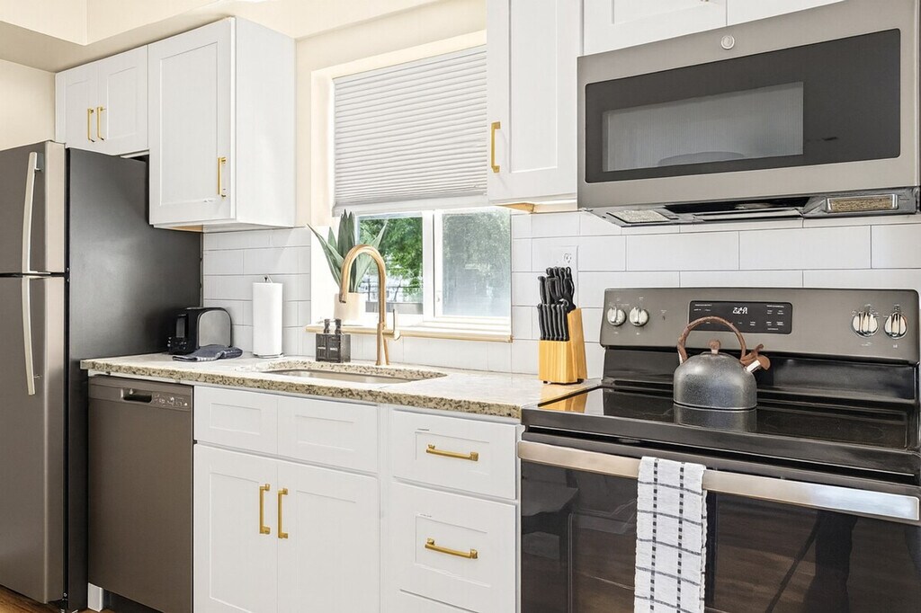Unwind and feel at home in this roomy, cozy, and recently remodeled 1-bedroom apartment, situated in the secure and tranquil community of Roseville. The open-concept living area is perfect for relaxing and watching a movie. The fully equipped kitchen features granite countertops and modern cooking appliances, including a microwave, stove, oven, refrigerator/freezer, blender, Keurig coffee maker, hot water kettle, toaster, sink, plates, bowls, glasses, silverware, and pots and pans. The bathroom is recently renovated and fully stocked with fresh towels and essential toiletries. You'll also have access to your own washer and dryer, high-speed Wi-Fi, air conditioning, heating, and an iron/board. An EV charger is available for your convenience. This unit is pet-friendly, and we charge a $150 fee per pet. This apartment is conveniently located in Roseville, perfect for those traveling to the Detroit area. Within 1 mile, you'll have access to the 696 and i94 expressways, plenty of restaurants and bars, shopping, and stores. The location is minutes away from Macomb Mall and Macomb Community College, and a short drive to Lake St. Clair and Metro Parkway Beach. There are security cameras surrounding the exterior of the property, and a Ring doorbell with a camera is installed at the front door for safety. Quiet hours are from 9 pm to 8 am daily. A $1000 fine will be charged for any smoking evidence inside the home for odor removal, duct cleaning, and furniture cleaning. Non-approved pets will be subject to a $1000 fine. [SI]