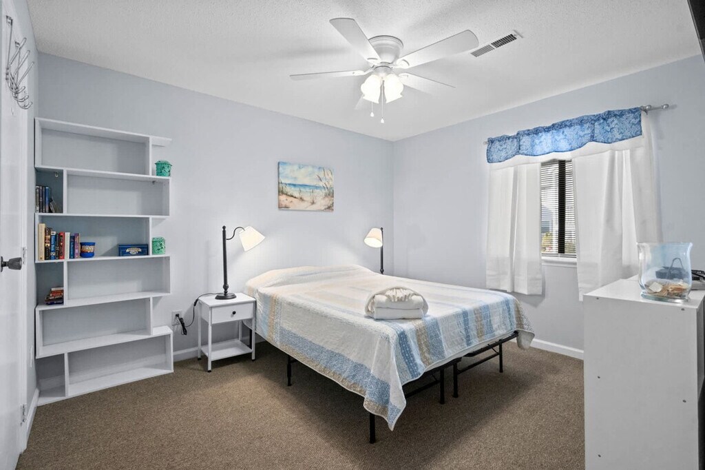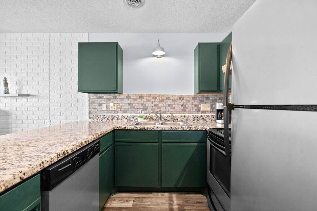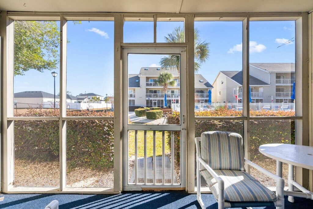 Feel at home in this gorgeous ground floor unit at Golf Colony Resort, offering an open floor plan that's perfect for entertaining and a stunning patio overlooking the pristine pool area. The primary bedroom has a queen bed, a 40" smart TV, a walk-in closet, and a private en suite bath with hallway access. The second bedroom also has a queen bed and a 35" smart TV with a private bath including a stand-up shower. The kitchen is fully stocked for any home-cooked meals with a dining table for four and four additional bar stools at the kitchen peninsula. Comfortably appointed furniture and a 55" Smart TV make the living room very comfortable for four. There is a beautiful screened porch overlooking the pool deck which contains grills and smokers and outdoor dining areas both poolside and grill side. Linen service, including linens for all beds, bath towels, hand towels, and washcloths, is available for an additional fee of $50 for your stay. The convenience of being steps away from the pool and other local activities makes this unit the ideal getaway. Routine pest control treatment may be scheduled during your stay, typically occurring on the 4th Thursday of the month. The technician will knock before entering and will complete the treatment in just a few minutes. A fine may be applied if entry is refused. [SI]