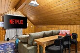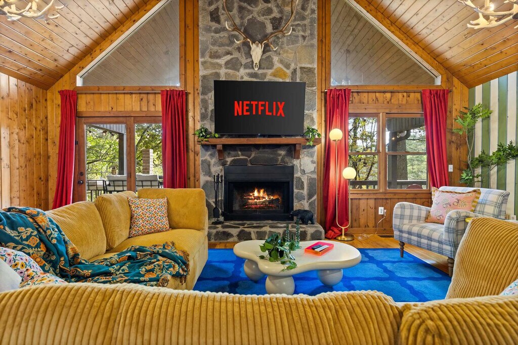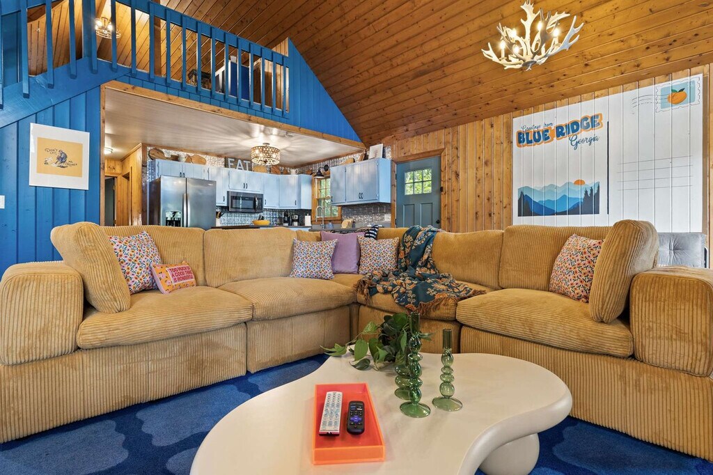 Feel at home in this stunning 4-bedroom mountain cabin in Blue Ridge, GA, that comfortably accommodates up to 14 guests, making it ideal for families, friends, or multi-family vacations! This home perfectly blends rustic charm with modern comfort. Step inside to find soaring ceilings, cozy living spaces, and panoramic views of the surrounding nature. Gather around the stone fireplace, cook up a feast in the fully stocked kitchen with high-end stainless appliances, a large refrigerator, ample cabinetry and cooking space, and a coffee maker with Keurig and drip options, or head out to the deck. The fun continues outdoors with a hot tub, fire pit, kids playground, private sauna, private small dock, outdoor patio/dining, BBQ grill, giant Jenga, corn hole, kayaks, movie theater, and game room with a pool table, arcade games, poker, and darts. Up to 2 dogs are allowed for $125 per stay and long-term stays are available upon request. Nearby attractions include the Blue Ridge Scenic Railway (1.8 miles), Mercier Orchards (3.2 miles), Toccoa River Swinging Bridge (14 miles), Long Creek Falls (15 miles), and Blue Ridge Adventure Park (2.5 miles). Restaurants include The Black Sheep Restaurant (1.8 miles), Harvest on Main (1.8 miles), Chester Brunnenmeyer’s Bar & Grill (1.9 miles), Southern Charm Restaurant (1.7 miles), and Toccoa Riverside Restaurant (10 miles). Renting a car is a convenient option to explore the area. Check-in is at 4pm and check-out is at 10am. No parties are allowed and violations may result in immediate termination of the stay. [SI]