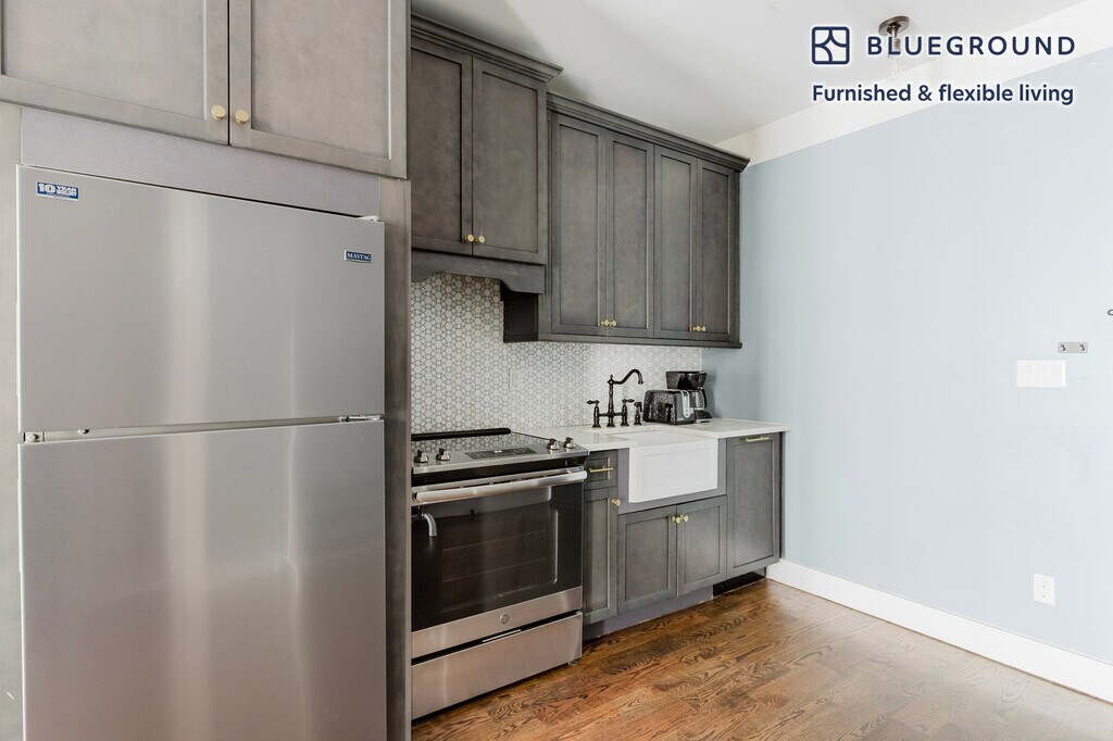 Discover the best of New York, with this one bedroom apartment in Williamsburg. It’ll be easy to simply show up and start living in this furnished apartment with its fully equipped kitchen, living room, and our dedicated, on-the-ground support. (ID #NYC1942) The advertised rate of $4,180/month is the lowest available price, based on a 1 month(s) and 24 day(s) stay with a move-in date of December 9, 2025. If you’re looking for a 1-year stay, the rate is $5,780/month. Rates vary depending on the duration of stay, season, and other parameters. For exact pricing and additional pricing components, please visit our website and enter your desired move-in and move-out dates. The rate is applicable when billed upfront; it can be higher if billed in multiple payments. Brokers are welcome to reach out. Were you looking for an unfurnished lease? Try Blueground instead and upgrade from unfurnished to furnished living: - Furnished at rates comparable to unfurnished - No setup or furniture costs - save thousands - Move-in ready - save time, just bring your suitcase Designed with you in mind Gorgeous furniture, fully equipped kitchen, smart TV, and a premium wireless speaker are just a few of the amenities you’ll find inside this one bedroom apartment. Ideally located in New York, you’ll find a lot to love outside as well. When you’re ready to relax, you’ll be happy to discover every Blueground bedroom comes with superior quality mattresses, luxury linens, and cozy towels. We handle everything so you can simply show up and start living. Sleeping arrangements Queen Bed, 63in/160cm Amenities Building amenities unique to this one bedroom apartment include an on-site: - Dryer in building - Elevator - Game room - Washing machine in building - Lounge - Pets allowed Arrival and ongoing support The entire apartment is yours to enjoy! Throughout your stay, you’ll have access to our Client Experience team through the Blueground App. You can schedule additional cleanings, submit maintenance requests, and view our neighborhood recommendations with just a few taps. We’ll share all details upon confirmation of your stay. Ideally Located This furnished apartment is situated in Williamsburg, known as Brooklyn’s creative outlet. Residents vary from artists and young professionals working in the media or entertainment industries to families. Williamsburg Bridge is great for long strolls, running or biking. Over the weekend, visit Bedford Avenue, which is constantly buzzing with trendy boutiques, fine dining, outdoor day parties and a thriving music scene. East River State Park also offers a great sunset over the Manhattan skyline. Embarking on the L train, you can be in the heart of Manhattan in just a few minutes. Also the M and J trains make it easy to get to other downtown neighborhoods. Other things to note Building amenities may have an extra cost. This Blueground apartment has flexible lease options, allowing you to book it for one month, a year, or more. Pets are welcome, though weight limits and breed restrictions apply and may incur fees. Brokes CYOF. We take great pride in ensuring every photo displayed is shot in our own units with our actual furnishings. That said, we regularly refresh our decor and furniture arrangement, which may differ from what’s pictured. [SI]