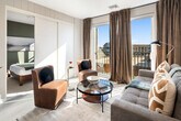 The advertised rate of $4,948/month is the lowest available price, based on a 1 month(s) stay with a move-in date of April 11, 2026. Rates vary depending on the duration of stay, season, and other parameters. For exact pricing and additional pricing components, please visit our website and enter your desired move-in and move-out dates. The rate is applicable when billed upfront; it can be higher if billed in multiple payments. Feel at home in this stunning 850 sq. ft. 2-bedroom apartment in the heart of New Haven’s historic downtown, located in a brand-new luxury building. Every moment in this apartment is designed to exceed expectations, whether you’re unwinding in the living room with floor-to-ceiling windows or preparing a gourmet meal in the fully equipped kitchen. The apartment features a luxurious bedroom with a 13-inch ultra-luxe mattress, carefully selected curtains, and ambient lighting, a cozy den, an elegant dining table, an in-suite laundry with a washer and dryer, and a spacious living area designed for comfort with a sofa, loveseat, and coffee table. Pets are welcome on a case-by-case basis, with prior approval and a per-stay fee. Enjoy access to modern co-working spaces with private work pods and fully equipped meeting rooms, a cappuccino bar, a bike room and fix-it station, a package locker system, a fireside lounge with a billiards table, a full-scale fitness center, outdoor dining and entertainment areas with courtyard dining tables, a pergola with outdoor TVs, urban gardens, an outdoor billiards table, an outdoor screening area, and relaxation zones with a cabana, hammock, and shuffleboard. Leave the car behind and explore the old-fashioned way! This amazing location in the center of historic downtown New Haven and the private parking spot means you can enjoy walking access to New Haven’s tree-lined streets, inspiring entertainment, and culinary offerings. It's a 2-minute walk to Yale New Haven Hospital, a 5-minute walk to Yale School of Medicine, an 11-minute walk to Yale’s historic Old Campus, a 7-minute walk to Union Station, a 12-minute walk to Yale University Art Gallery, a 3-minute walk to Lupi-Marchigiano Bakery and Blue State Coffee, and an 8-minute walk to College Street Music Hall. Plus, it's just a 1.5-hour train to Midtown Manhattan. This apartment is located in a quiet luxury complex, so there are strict quiet hours from 10 PM to 8 AM. To ensure the comfort of guests and compliance with this policy, this apartment is equipped with NoiseAware decibel detectors. Smoking of any kind is not allowed, and smoking violations are subject to a $500 fine plus the cost to clean, deodorize, and repair damages. Parties, events, or large gatherings are not permitted. Guests cannot host events for outside visitors or any event with more than four people. Includes blazing-fast Wi-Fi, a dedicated work-from-home space, and unlimited coffee. [SI]