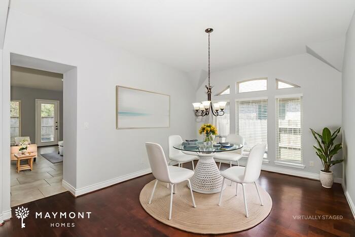 MOVE-IN READY This home is move-in ready. Schedule your tour now or start your application today. Monthly Recurring Fees: $25.00 - Smart Home Set in New Caney, TX, this 4-bedroom, 3.5-bath home offers 3,077 square feet of expansive living space designed for both everyday comfort and effortless flow. With fresh interior paint and a striking brick-and-stone exterior, the home makes a strong first impression while keeping practical details front and center. Convenient access to major roadways places Downtown Houston roughly 40–45 minutes away, with shopping, dining, and outdoor recreation nearby. The main level opens into wide, light-filled living areas finished with tile flooring, creating a seamless connection between spaces. A dedicated dining room sits just off the entry, while the main living area extends toward the back of the home, framed by large windows that bring the outdoors in. The kitchen anchors the layout with granite countertops, an oversized island, abundant cabinetry, and stainless steel appliances, making it a natural gathering point. A nearby breakfast area connects directly to the covered patio, turning the backyard into a usable extension of the interior. The primary bedroom is thoughtfully positioned on the main level, offering generous proportions and a private bathroom with dual sinks, a soaking tub, and a separate glass-enclosed shower. Upstairs, additional bedrooms are well sized and supported by full bathrooms, while bonus spaces provide flexibility for a variety of needs without crowding the main living areas. Out back, a covered patio overlooks the yard and creates a shaded space suited for relaxing or entertaining throughout the year. With its spacious interior, refreshed finishes, and convenient New Caney location near commuter routes and local amenities, this home delivers scale, function, and comfort in one cohesive layout, apply now! *Maymont Homes provides residents with convenient solutions, including simplified utility billing and flexible rent payment options. Contact us for more details. This information is deemed reliable, but not guaranteed. All measurements are approximate. Actual product and home specifications may vary in dimension or detail. Images are for representational purposes only. Some programs and services may not be available in all market areas. Prices and availability are subject to change without notice. Advertised rent prices do not include the required application fee, the partially refundable reservation fee (due upon application approval), or the mandatory monthly utility management fee (in select market areas.) Residents must maintain renters insurance as specified in their lease. If third-party renters insurance is not provided, residents will be automatically enrolled in our Master Insurance Policy for a fee. Select homes may be located in communities that require a monthly fee for community-specific amenities or services. For complete details, please contact a company leasing representative. Equal Housing Opportunity. This property is subject to homeowners' association (HOA) governance; restrictions and covenants may apply. Estimated availability date is subject to change based on construction timelines and move-out confirmation. This property allows self guided viewing without an appointment. Contact for details.