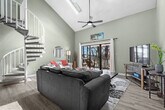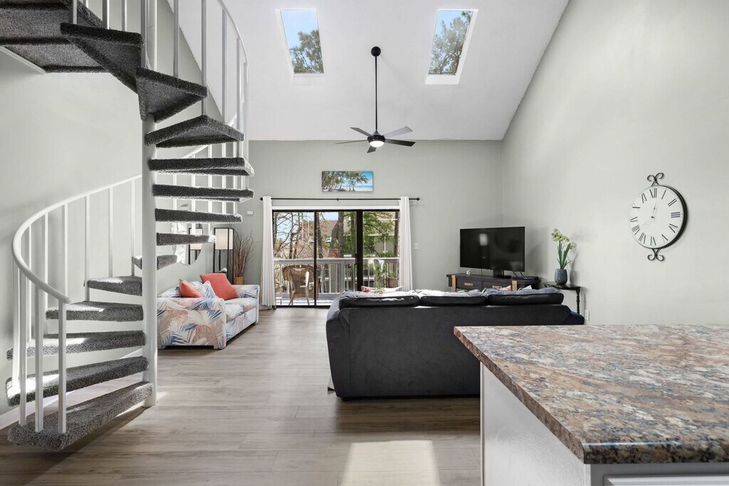The advertised rate of $2,135/month is the lowest available price, based on a 1 month(s) and 2 day(s) stay with a move-in date of February 19, 2026. Rates vary depending on the duration of stay, season, and other parameters. For exact pricing and additional pricing components, please visit our website and enter your desired move-in and move-out dates. The rate is applicable when billed upfront; it can be higher if billed in multiple payments. Feel at home in this 3rd-floor condo in Surfside. This apartment features 1-king bed and 2-queen beds, including two in the upstairs loft bedroom. The downstairs master suite contains a king-size bed, a private en suite bathroom with hallway access, and a large closet. The fully stocked kitchen includes all the main appliances and a coffee maker. Adjacent to the kitchen is a dining table with seating for four, as well as bar stool seating at the kitchen peninsula. The open-plan living area with vaulted ceilings contains tons of natural light from the skylights. Step out onto the covered balcony which overlooks the pool, and you will also find the full-sized washer and dryer in the utility closet. One dedicated parking space is available in front of the condo. There is an overflow lot across the street and next to the tennis courts for any additional vehicle. Located between Business Hwy 17 and Hwy 17 Bypass, Golf Colony at Deerfield is right in the middle of Surfside Beach with easy access to restaurants, shopping and tons of amenities. There are three grocery stores, Target, and Walmart within 3 miles or a 10-minute drive. Some favorite restaurants like the Wooden Spoon, Surfside Pizza, The Bar-B-Q House, and Johnny D's Waffles are right around the corner. The world-famous Murrells Inlet Marsh Walk is about 15 minutes south, and there are additional restaurants and great shopping destinations in the Market Common. The Myrtle Beach International Airport is just 15 minutes away. Quiet hours are between 11 pm and 7 am as per Surfside Beach ordinance. Please consider your neighbors and keep noise at a reasonable sound level. Guests must be 25 or older to book. No smoking and no pets are permitted. Check-in time is at 4:00 PM, and check-out is before 10:00 AM. [SI]