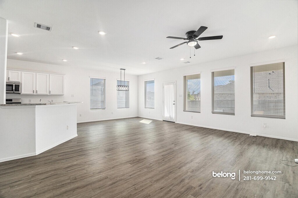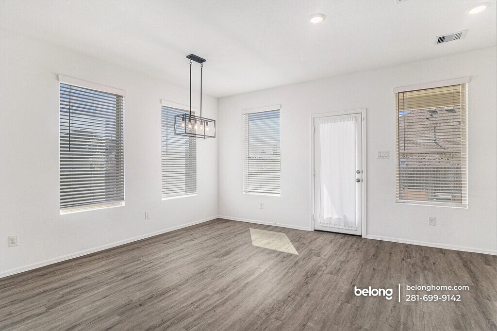 Blending practical comfort with community charm, this spacious 5-bedroom, 3.5-bath home in Roman Forest offers a thoughtful layout designed to meet everyday needs with ease. The living area welcomes you in with warm flooring, abundant natural light, and an open-concept flow that connects seamlessly to the kitchen and dining spaces. In the kitchen, you’ll find stainless steel appliances, extensive counter space, and a generous amount of cabinetry. A wraparound breakfast bar adds versatility to the space, keeping things open and sociable. Your primary suite is generously sized and opens into a bright ensuite bath that features a separate soaking tub, step-in shower enclosed in glass, and dual vanities, with direct access to a spacious walk-in closet equipped with built-in shelving. This home has a water filtration system by Quality Home Product of Texas. You’ll enjoy a well-kept front lawn, a fully fenced backyard, and side yards that give you extra space for play, gardening, or storage. The covered patio provides a lovely spot where you can unwind or share a relaxed meal outdoors. Roman Forest is a welcoming community with access to parks, a neighborhood pool, and quiet, tree-lined streets ideal for walking or biking. Located just 10 minutes from Big Rivers Water Park and close to Lake Houston Wilderness Park, the home also offers easy access to outdoor recreation. Daily errands are made simple with nearby grocers such as Archie's Food Basket and Food Town in New Caney, while great neighbors and a peaceful environment help round out the appeal. *Our homes come as-is with all essentials in working order. Want upgrades? Request it through the Belong app, and our trusted pros will take care of the rest!