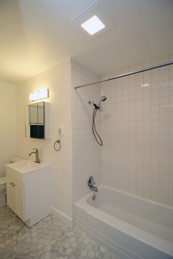 This charming, mid-century 1 bedroom, 1 bath apartment home has been nicely updated and is located in a well-maintained brick 5-plex with a fab central courtyard in central Kenton, just around the corner from restaurants, shops, coffee, mass transit. This location couldn't be better! Features Include: • Hardwood floors with new vinyl flooring in Kitchen and Bathroom • Spacious Living Room • Updated kitchen with newer cabinetry and appliances • Bedroom has a new ceiling fan • Spacious Bathroom has a full-sized tub with tiled shower surround and loads of cabinets for storage. • Dual entry • On-site laundry • Street parking • Water/sewer, trash & heat included • 2 blocks from the MAX • Lovely communal courtyard • Bike rack • Steps from Historic Kenton neighborhood and all of its offerings of local libations, coffee shops, parks, library, and more. -- Renter's Insurance Required -- * No pets preferred, No dogs firm ** This home is not ADA compliant. *** Per City of Portland/Multnomah County law, we cannot accept applications for this property until 2:00pm on Saturday, December 13th. Any application submitted before that day and time will be considered received at 10:00pm on Saturday, December 13th as an 8 hour penalty.