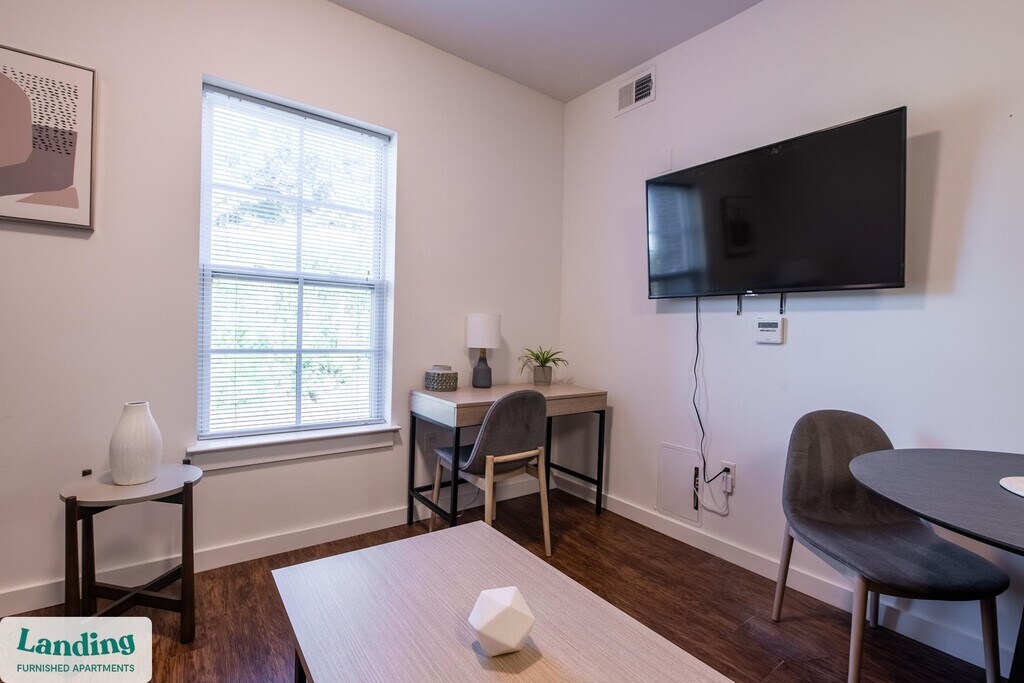 Landing offers flexible lease terms from weeks to months. Please always visit our website or contact us for the latest pricing & availability. Stay longer, save more: 6-Month Minimum base rent: starts at $2058/mo 12-Month Minimum base rent: starts at $1674/mo Landing offers flexible leases across a network of over 35,000 fully-furnished apartments throughout 375+ cities so you can rent on your terms, practically anywhere, and avoid the hassle of paying deposits or application fees. Visit to learn about all the benefits of a Landing membership, see our competitive up-to-date pricing, explore available apartments, take virtual tours, and make reservations online without jumping through traditional rental hoops. Landing's apartments at Vida East are designed for comfortable, easy living, with the ability to stay as long as you like. Experience living with Landing Every apartment is outfitted with all the modern essentials including: custom-designed furnishings, a fully-equipped kitchen with deluxe stainless steel appliances, a gourmet coffee maker, premium linens, Smart TVs, and incredibly fast, reliable internet for working from home. When you live with Landing, you'll enjoy a hassle-free experience with the added benefit of 24/7 access to our dedicated member experience team. Some of the nitty-gritty: a background check and proof of income are required; we're completely smoke-free; bundled utility packages and pricing vary based on length of stay; pet-friendly options available; listed price reflects a 12-month minimum stay.