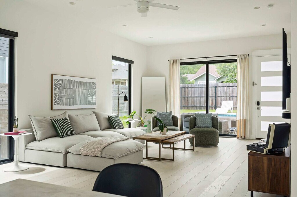 Feel at home in this quiet, bright, spacious, and serene 4-bedroom house in the heart of East Austin. This charming residence boasts a contemporary decor, featuring a full kitchen, pool, sun loungers, outdoor shower (unavailable in the winter), a fully fenced-in property for added privacy, a grill, and outdoor seating. Two parking spots are available on the driveway, and free street parking is available. Located in East Austin, this house is ideally situated near coffee shops, bars, and parks. Walk to downtown, Lady Bird Lake, South Congress, Rainey Street, and the University of Texas campus. Moody Amphitheater and the University of Texas are less than 2 miles away, East 6th Street Bars are 1.5 miles away, Rainey Street District is 2.3 miles away, and Barton Springs and Zilker Park are 6 miles away. It's easy to get around using ride-sharing apps or bikes/scooters. Occupancy is limited to 10 guests, and the primary guest must be at least 21 years old and present for the entirety of the stay. Pets, smoking, and fireworks are not allowed. Parties or events are not allowed. Quiet hours are from 10 PM to 7 AM. Please ensure that the entrance gates remain shut at all times due to the presence of an unsupervised swimming pool on the premises. If you need to use the hard key, please place it back in the lockbox before departing; failure to return any keys used to the lockbox will result in a $50 replacement fee per key. For health, safety, and maintenance reasons, pets are strictly prohibited from entering the pool; a $500 fine will be charged if this rule is violated. Please do not set the home's thermostat above 76 (heating) or below 68 (cooling). To avoid overloading the system, please adjust the thermostat by no more than 2 degrees per hour and keep the doors and windows closed as much as possible. The minimum smoking fee is $250; however, the total charge may be higher if the property's condition renders it temporarily unrentable. Registration Number: 427327 [SI]