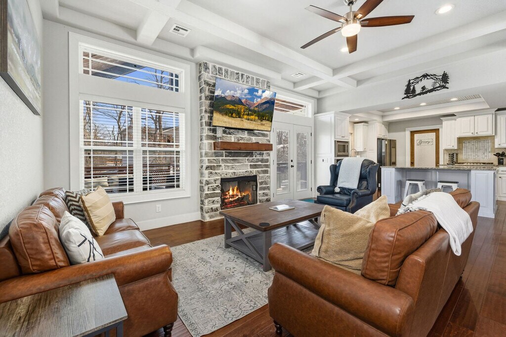 The advertised rate of $16,577/month is the lowest available price, based on a 30 day(s) stay with a move-in date of July 31, 2026. Rates vary depending on the duration of stay, season, and other parameters. For exact pricing and additional pricing components, please visit our website and enter your desired move-in and move-out dates. The rate is applicable when billed upfront; it can be higher if billed in multiple payments. Feel at home in this huge home in the center of Bentonville! Located along the Tristan and Action Alley MTB trail, this home is stocked with amenities bikers will love. This home has five bedrooms. This home features a decked-out patio with a dining table, grill, Smart TV, fireplace, cozy seating, and a ping pong table. There is a large game room with a poker table, kitchenette, and additional living space. The large, open concept living room has a Smart TV, seating, and a fireplace. The modern, fully stocked kitchen has the essentials you'll need to create your favorite meals. A washer and dryer are available for guest use. Enjoy the hot tub and secure bike storage in the garage. Two Pack 'n Plays and two highchairs are available. Dogs are welcome with a fee of $90 per dog, with a maximum of three. Ride or drive just 3 miles to Downtown Bentonville for Northwest Arkansas favorites. This home is 0.7 miles to Bentonville Bike Playground, 3 miles to Downtown Bentonville & Crystal Bridges, and 4 miles to The Momentary & 8th Street Market. It's a 2-mile ride via Tristan MTB trail to the Slaughter Pen Hollow trailhead. Parties or guest actions that result in disturbances, property damage, extensive extra cleaning, or smoking indoors will incur a fine of $1,000. Dogs discovered at the property without prior notice or cats discovered at the property will incur a fine of $400. Unauthorized checkout delays will incur a fine of $100 per hour. If you smoke in the home, you will be fined $1,000 plus the cost of any smoke remediation necessary. Quiet hours are between 10:00 PM and 10:00 AM. Check-in is any time after 3:00 PM. [SI]