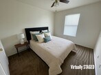 View 360 Virtual Tour: 2 bedroom 1 bathroom downstairs unit with washer and dryer connections. Features laminate flooring, ceiling fans, and a cozy living area. The kitchen offers space for dining, and both bedrooms are carpeted for added comfort. Disclaimer: The furnishings or enhancements shown are AI-generated and intended for inspiration only. They may not reflect the actual scale, condition, or current features of the property.