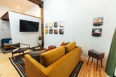 Feel at home in this peaceful, light-filled studio overlooking The William’s skylit atrium and Carrigan’s below. Large interior windows fill the space with soft natural light. This loft is located in a building with elevator access to all floors. This apartment features a queen bed, a queen pull-out sofa with memory-foam mattress, and a fully stocked kitchen that includes chef’s knives, cookware, assorted spices, small-batch teas, and reusable paper towels, plus a French press, Chemex, burr grinder, and locally roasted beans. With in-unit laundry, a Smart TV, Bluetooth record player, curated vinyl, and luxury linens, this loft delivers everything you need for a calm, stylish stay right in downtown Birmingham. The bathroom features a walk-in shower and small-batch toiletries. Paid street parking and nearby lots are available within a couple of blocks. This apartment is steps from Birmingham’s best dining, nightlife, and cultural landmarks. Carrigan’s at The William is right downstairs via elevator, and guests receive a special discount. Many restaurants, coffee shops, music venues, and cultural centers are within a few blocks. UAB Hospital is less than 1 mile away and St. Vincent’s Hospital is approximately 2 miles away. Downtown Birmingham is highly walkable, and most restaurants and venues are within 3–5 blocks. The Birmingham–Shuttlesworth International Airport is approximately a 10–15 minute drive. Quiet hours are after 10 PM. No smoking or vaping, pets, parties, or events are allowed. The maximum occupancy is 4 guests. You may hear the low ambient hum of Carrigan’s or the atrium lounge below. The cleaning team arrives promptly at 11 AM checkout. Includes a dedicated desk and fast Wi-Fi. [SI]
