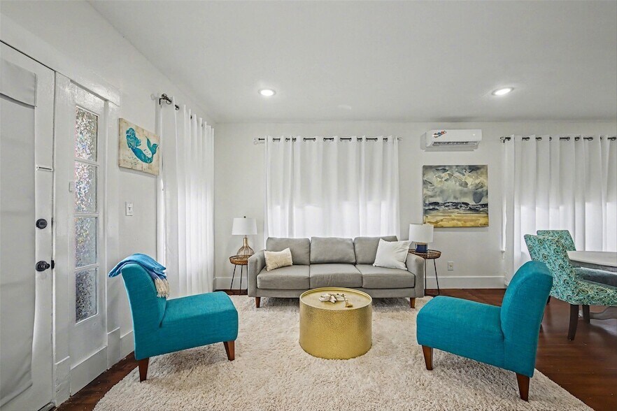 Welcome to this charming, fully renovated upstairs apartment offering 2 bedrooms and 2 beautifully updated full baths, centrally located in Galveston, Texas. This quaint residence blends coastal character with modern upgrades throughout. Recent renovations include updated flooring, contemporary fixtures, an updated kitchen, and stylishly renovated bathrooms, creating a fresh, move-in-ready space. Enjoy outdoor living with a private patio, plus the convenience of a one-car garage, a rare bonus for apartment living on the island. Best of all, ALL utilities are included, offering exceptional value and worry-free living. Ideally situated just minutes from the beach, UTMB, downtown Galveston, dining, shopping, and entertainment, this apartment delivers comfort, charm, and unbeatable convenience in one inviting package. Inquire for furnished option.