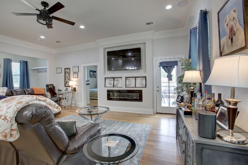 Property Id: 2177025 With a master suite located far away from the heart of the house and it's own private porch, separate shower and soaking tub, this oasis of 4 bedrooms and 3.5 bathrooms is one of the most unique builds you will ever see. Downstairs you will find an open concept living room, dining area and kitchen, as well as a secret bedroom located behind a bookshelf/murphy door! Upstairs you'll find two more bedrooms and another full bathroom, as well as a balcony! New fencing allows more outdoor room for pets!