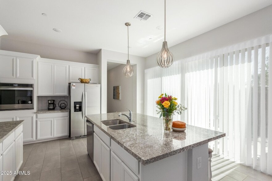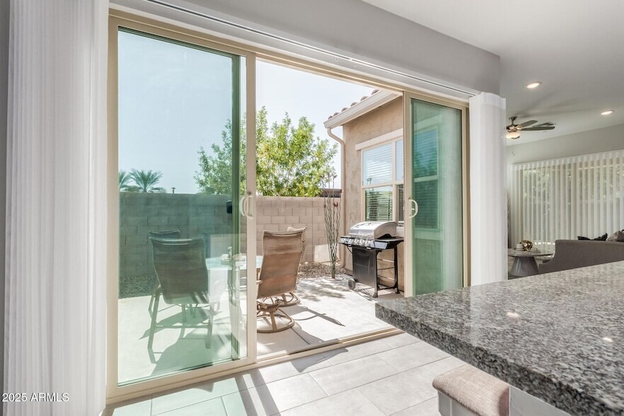 Palm Vista Retreat - 6-month furnished seasonal lease in gated The Vistas at Palm Valley, Goodyear. Fully turn-key single-level 3-bed, 2.5-bath with 10-ft ceilings and FOUR 8-ft sliding glass doors delivering seamless indoor-outdoor flow to the extended covered patio and private palm-lined courtyard. Designer-furnished throughout: king primary suite, one queen and bunkbed in guest rooms, smart TV in great room + primary, high-speed Wi-Fi, gourmet kitchen with quartz counters, gas range, Whirlpool stainless appliances, fully stocked pantry, all linens, towels, patio furniture & gas BBQ. Exceptional privacy and abundant natural light. Quiet luxury: plush carpeting in bedrooms only, new custom window treatments. Steps from the resort-style pool, lounge area, and grill pavilion. CLICK MORE TRUE GATED COMMUNITY - PRIVACY & SECURITYElectronic controlled-access gate (not manned, but resident-only entry). Quiet, low-traffic streets, well-lit at night - the safe, lock-and-leave lifestyle snowbirds love. RARE PREMIUM LOT - NO NEIGHBOR TO THE SOUTHExtra privacy, palm-lined views, and abundant natural light. The resort-style pool, shaded loungers, and gas-grill pavilion are literally steps from your back gate. INDOOR-OUTDOOR LIVING AT ITS BESTFour 8-ft sliding glass doors open the entire back of the house to the extended covered patio and private side courtyard - perfect for morning coffee, sunset cocktails, or post-game relaxation. FULLY FURNISHED & STOCKED - JUST BRING YOUR SUITCASE King primary suite + one queen guest room and one queen/twin bunkbed (sleeps 6-7 comfortably)85" smart TV in great room + 65" in primaryHigh-speed Wi-FiGourmet kitchen with quartz counters, gas range, Whirlpool stainless appliances, Keurig, cookware, spices, everythingAll linens, bath towels, pool towels, laundry suppliesWasher/dryer, patio furniture, gas BBQ GOODYEAR / PALM VALLEY PRIME LOCATION Palm Valley Golf Club - 1.3 miGoodyear Ballpark (Guardians & Reds Spring Training) - 3.8 miWigwam Resort - 4.4 miTarget, new Trader Joe's, Sprouts, Starbucks, LifeTime Fitness - 1.8-2.5 miI-10 on-ramp - 1.1 mi (Sky Harbor ~25 min) LEASE TERMS6-month seasonal lease (Nov-May dates flexible) - flexible to shorten with 60-day notice from tenant.Utilities capped (generous electric & gas allowance) - Water/sewer/trash/HOA included2-car garage | Non-smoking | Pets by Approval (by Landlord Approval)