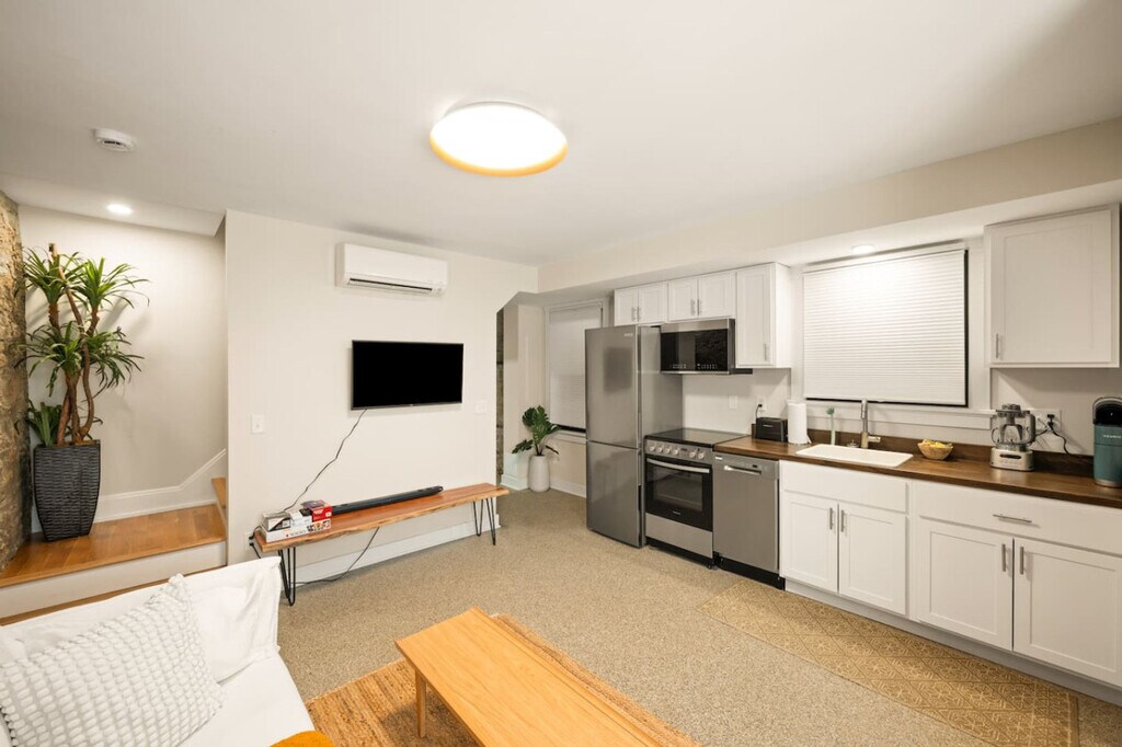 Feel at home in this charming 2-bedroom, 2-bath apartment located on the first and second floors, just a 5-minute walk from Findlay Market. Perfect for urban explorers, this cozy space offers a convenient and budget-friendly stay with easy access to Cincinnati's vibrant attractions. The apartment provides a cozy area to recharge between adventures, ensuring you have everything you need for a comfortable stay. Free parking is available in a first-come, first-served lot adjacent to the property, with additional free street parking options. Situated just beyond Findlay Market and the vibrant Over-the-Rhine entertainment district, this property offers close access to some of Cincinnati’s best restaurants, bars, and local shops. With over 100 cafes, bars, restaurants, and parks within a 5-10 minute walk, and a Streetcar stop next door offering free rides around downtown, you'll be near the action without being directly in the middle of it. The neighborhood is still in the process of revitalization, making it a great choice for travelers seeking both convenience and value. Nearby attractions include the Cincinnati Zoo, Cincinnati Art Museum, and Great American Ballpark, all within a short drive or walk. The apartment is located in an urban environment, which may not be ideal for everyone. Quiet hours are from 9:30pm to 8am, and any noise disturbances may result in reservation termination without refund. Parties and amplified music are strictly forbidden without advance written consent, with violations potentially leading to prosecution under local laws. Smoking and open flames are not allowed, with a $300 cleaning fee for violations. Additional fees may apply for excessive cleaning, pet hair, or unreturned keys. [SI]