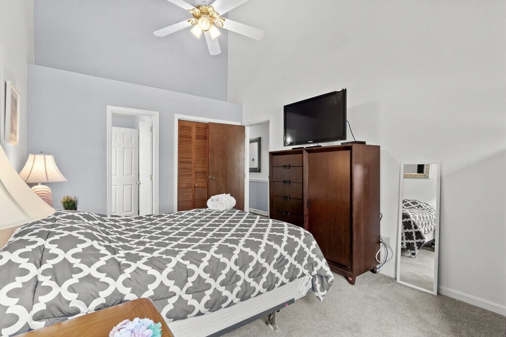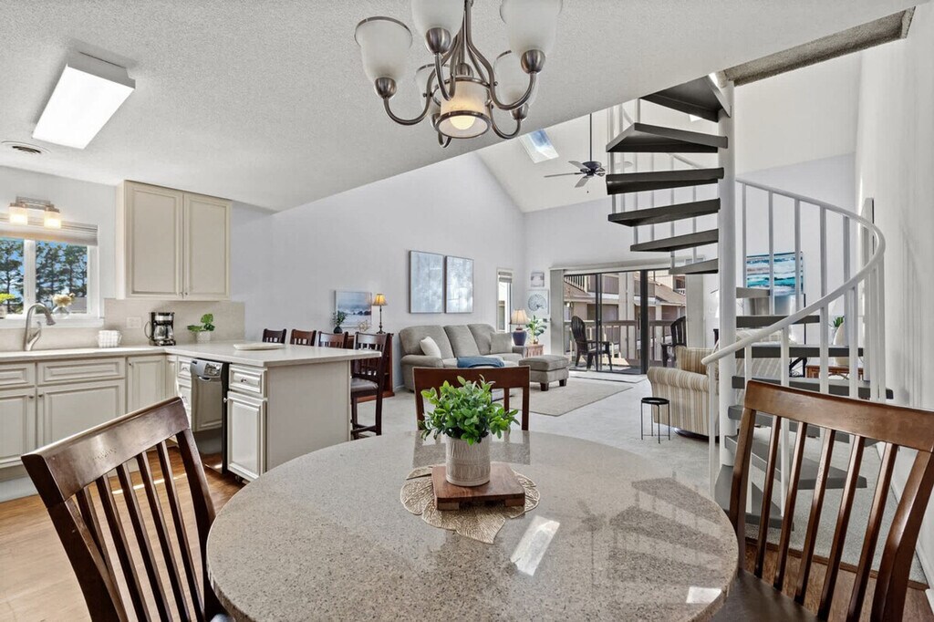 Feel at home in Ortiz' Oasis, a spotless and spacious 2nd-floor end unit in the quiet Golf Colony Resort, overlooking the rarely crowded pool deck and grilling area. This apartment is comfortable for a family of 4 and spacious enough for a maximum occupancy of 5. Boasting almost 1200 square feet of space, this apartment features a large downstairs bedroom with a queen-size bed and an en suite private bathroom with a stand-up shower. The fully stocked eat-in kitchen allows you to prepare gourmet meals. Relax in the comfort of the living room with vaulted ceilings and plenty of natural light from the skylights. The loft, accessed by a spiral staircase, has an even larger bedroom with 2 queen beds, a walk-in closet, a flat-screen TV, and another en suite private bathroom with a stand-up shower. Come discover one of the best-kept secrets in Surfside at Golf Colony Resort. Routine pest control treatment is scheduled during your stay, typically on the 4th Thursday of each month. A licensed and insured pest control technician will require access to the apartment to perform the service and will knock before entering. Your cooperation is essential, as a fine may be applied by the HOA if entry is refused. We apologize for any inconvenience this may cause and appreciate your understanding. Includes a desk in the loft, perfect for working from home. [SI]