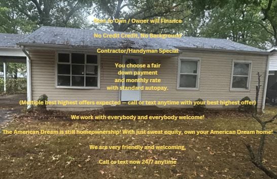 Property Id: 2368159 (NEGOTIABLE) Rent to Own/ Owner financing - handyman special - NO credit check. Homeownership OPPORTUNITY. Ideal for handymen, contractors, and cleaners. Needs tlc in the living room, kitchen, and bath. STOP renting. Be a homeowner. Act now; a down payment secures keys today! 30-year agreement for deed. You choose a fair down payment and a fair monthly rate. Closing via a third party: title company or notary. Discover Visual Video — 1st File, Helpful Guides, Video Testimonials and Photos — Are the Rest, Along with a Standard Doc File with Tips: Drive by anytime. To view, call or text and state your preferred time Quick sale expected; leave a voicemail with your max down payment and max monthly. The American Dream is still homeownership! With just sweat equity, own your American Dream home! Call or text anytime at
