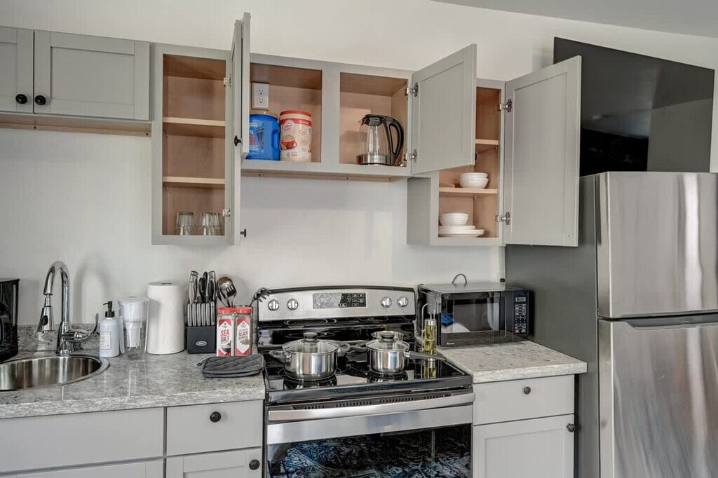 Relax and feel at home in this stylish studio apartment located in the heart of Central Downtown Milwaukee. This prime location makes exploring Milwaukee and the surrounding region easy and convenient. The living space features an innovative open-concept design that blends the living and dining areas with the kitchen, creating a modern and sleek living experience. The studio features a fully equipped kitchen with a microwave, stove, oven, refrigerator/freezer, toaster, coffee maker with coffee essentials, electric kettle, sink with hot and cold water, trays, glasses, silverware, pots and pans. The inviting full bathroom is completely private and separated from the main room and is stocked with essential toiletries. Enjoy high-speed Wi-Fi, a 4K 55" HDR smart TV, and reading lamps. There is no parking included. The city of Milwaukee requires permits for overnight parking on the street, and you can get up to 3 nights by calling the city or by filling out an online form. Situated in the heart of Milwaukee's popular East Side neighborhood, this apartment is known for its diverse range of activities, food, nightlife, and tourist attractions. The Milwaukee Art Museum is just a short drive or bike ride away. There are numerous breweries and beer gardens located throughout the East Side. Foodies will also be spoiled for choice with a wide range of dining options available to suit every taste and budget. The East Side is home to some of the best bars, nightclubs, and music venues in Milwaukee. The East Side offers plenty of opportunities for hiking, biking, and other outdoor activities. Quiet hours are between 10 pm and 8 am every day, and noise complaints or any violation of this rule may result in cancellation of booking and removal from property without refund. There is a strict no-party policy, and if there is a party of any kind, the police will be called and everyone will be removed from the property with no refunds. No unauthorized guests are allowed at the unit, and there is a $100 fine per guest if discovered. Smoking is prohibited without exception, and if any signs of smoking are found, a fine of $500 will be imposed. If you are found to have brought pets without prior notification, there will be a $500 fee. If tampered with, there will be a fee for the noise monitors installed in the unit. Depending on our cleaning schedule, we may be able to accommodate early check in/check out at a fee of $25/hour. Otherwise, for delayed checkout, there will be a $500 late check out fee. Includes an office desk and chair. [SI]