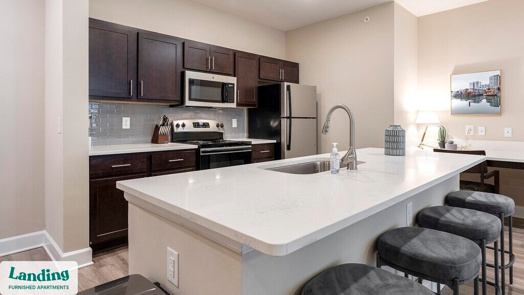Landing offers flexible lease terms from weeks to months. Please always visit our website or contact us for the latest pricing & availability. Stay longer, save more: 6-Month Minimum base rent: starts at $2180/mo 12-Month Minimum base rent: starts at $1780/mo Landing offers flexible leases across a network of over 35,000 fully-furnished apartments throughout 375+ cities so you can rent on your terms, practically anywhere, and avoid the hassle of paying deposits or application fees. Visit to learn about all the benefits of a Landing membership, see our competitive up-to-date pricing, explore available apartments, take virtual tours, and make reservations online without jumping through traditional rental hoops. Landing's apartments at The Isaac are designed for comfortable, easy living, with the ability to stay as long as you like. Experience living with Landing Every apartment is outfitted with all the modern essentials including: custom-designed furnishings, a fully-equipped kitchen with deluxe stainless steel appliances, a gourmet coffee maker, premium linens, Smart TVs, and incredibly fast, reliable internet for working from home. When you live with Landing, you'll enjoy a hassle-free experience with the added benefit of 24/7 access to our dedicated member experience team. Some of the nitty-gritty: a background check and proof of income are required; we're completely smoke-free; bundled utility packages and pricing vary based on length of stay; pet-friendly options available; listed price reflects a 12-month minimum stay.