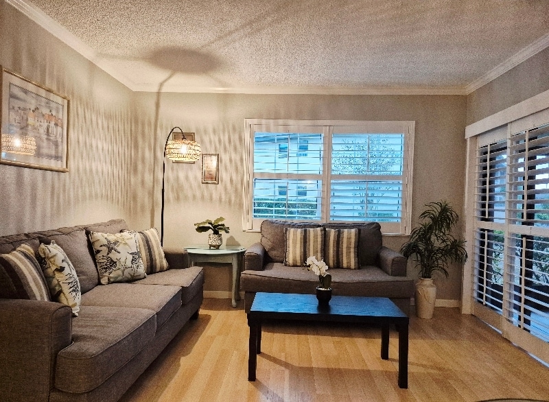 Property Id: 2266681 This turnkey, gorgeously furnished & updated 1st floor, 2 bed-2 bath condo combines comfort, convenience & classic Florida charm all in one! This corner unit gives a serene view of green space & tranquil canal from the screened lanai accessible from either living room or master bedroom. The open-concept lining-dining area has luxury tile & laminate flooring, crown molding, a well-appointed kitchen, en suite washer/dryer, comfy furniture, safety bathroom features, impact windows & plantation shutters that give privacy & lots of natural light. Interiors are in muted gray, seagreen & blue shades that evoke Florida beaches. The Oaks IV community offers a beautifully-maintained environment with mature oak trees, screened heated pool, walking paths, clubhouse- library, gazebo, shuffle boards and bocce courts. Well-situated near US 41 and I-75, this condo provides easy access to dining, shopping, banks, parks, entertainment, beaches & golf courses---all ideal to the lifestyle you favor.