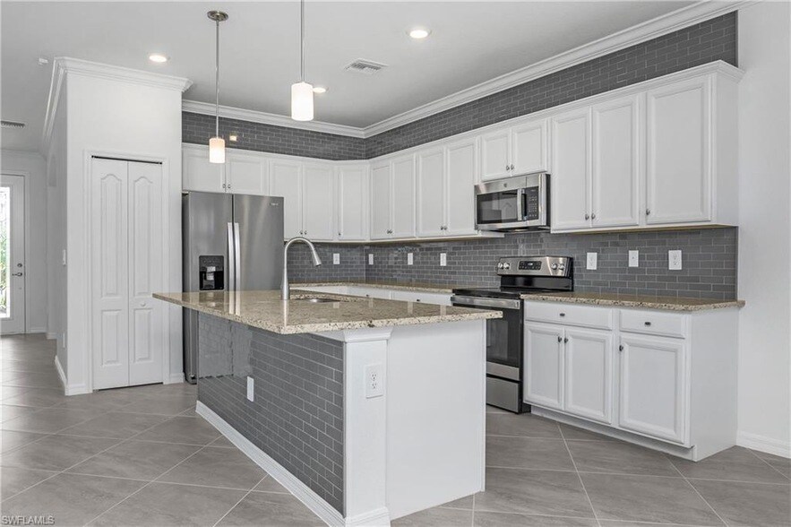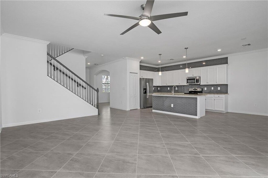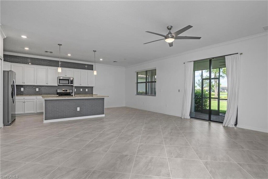 Stunning Two-Story 4 Bedroom plus a den and a loft, situated on a Double Lot with a Lake View!! Welcome Home to this beautifully maintained Amalfi floor plan situated on a rare double lot in the highly sought-after resort community of The Place at Corkscrew. This home is unfurnished and features four bedrooms, three full baths, and over 2,500 sq. ft. of living space, combining comfort and functionality with an open-concept design perfect for both everyday living and entertaining. Step inside to find a bright and airy great room that flows seamlessly into the dining area and a spacious kitchen featuring stainless steel appliances, granite countertops, walk-in pantry, white shaker cabinets, custom backsplash, and a large kitchen island. The whole house has brand new custom paint throughout, and boasts a first-floor bedroom and full bathroom, a den/flex room, and a large family room with glass sliding doors that open to your lanai. The large upstairs loft provides additional flexible living space ideal for a playroom, home office, or media room. The master suite features a huge bedroom with views of the lake, an oversized walk-in closet, private bathroom, linen closet, dual vanities and glass enclosed shower. Enjoy morning and evening serenity with beautiful lake views from your lanai and extended backyard. Located close to the amenity center for easy walks or golf cart ride to enjoy the resort-style lifestyle The Place at Corkscrew has to offer. Living in The Place at Corkscrew means access to a lagoon pool with a 100' waterslide, two waterfalls, two zero entry points, lifeguard on duty, 40-person spa, splashpad, sand volley ball, two-story fitness center, yoga room, spa room, indoor and outdoor restaurant and bar, cafe and marketplace, adulty-only bourbon bar, pickleball courts, tennis courts, basketball, dog park, playground, and so much more, Close to RSW Intl Airport, shopping, dining, entertainment, FGCU, and our beautiful Southwest Florida Beaches. Available as an unfurnished annual rental.
