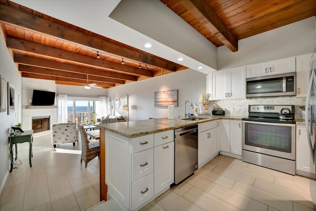 Feel at home in this beachfront 2-bedroom, 2-bathroom condo in Indian Shores, offering stunning gulf views and direct beach access. This bright and inviting condo sleeps up to 8 guests and features a fully equipped kitchen with a full refrigerator, stove/oven, dishwasher, microwave, Keurig, kettle, toaster, blender, ice maker, cookware, dishware, silverware, and glasses. Enjoy the open-concept living area with comfortable seating and TVs in all rooms, as well as ceiling fans and central air conditioning throughout. An in-unit washer and dryer with laundry essentials, a vacuum, an iron, and an ironing board are provided for your convenience. A damage waiver is included in every reservation, covering up to $500 in accidental damage during your stay. Located steps from the soft white sand and turquoise waters of the Gulf, this condo offers easy access to local restaurants, cafes, boutique shops, and family-friendly attractions. The PTSA Beach Trolley runs along Gulf Blvd from Clearwater to St. Pete Beach and stops right nearby, making it easy to explore without driving. Beachfront dining and cafes are within walking distance or a short drive, and broader restaurant options are available in Indian Rocks Beach and Clearwater, approximately a 10–15 minute drive away. St. Pete–Clearwater International Airport is about a 30–35 minute drive, and Tampa International Airport is about a 40–45 minute drive. Quiet time is between 10 pm and 8 am daily. A digital rental agreement must be signed and completed prior to arrival, including providing a photocopy of a legal ID and a verification selfie. Pets are not allowed, and unauthorized pets will incur a penalty of $400 per pet and possible cancellation of the remainder of the reservation without a refund. If cleaners determine smoking has taken place, a $250 penalty will be charged. In the case of a lockout (except in the case of a lock dying due to batteries) a fee will be charged for helping gain re-entry; the fee is $125 during regular business hours (Mon – Fri, 8 AM - 8 PM) and $200 outside regular business hours. [SI]