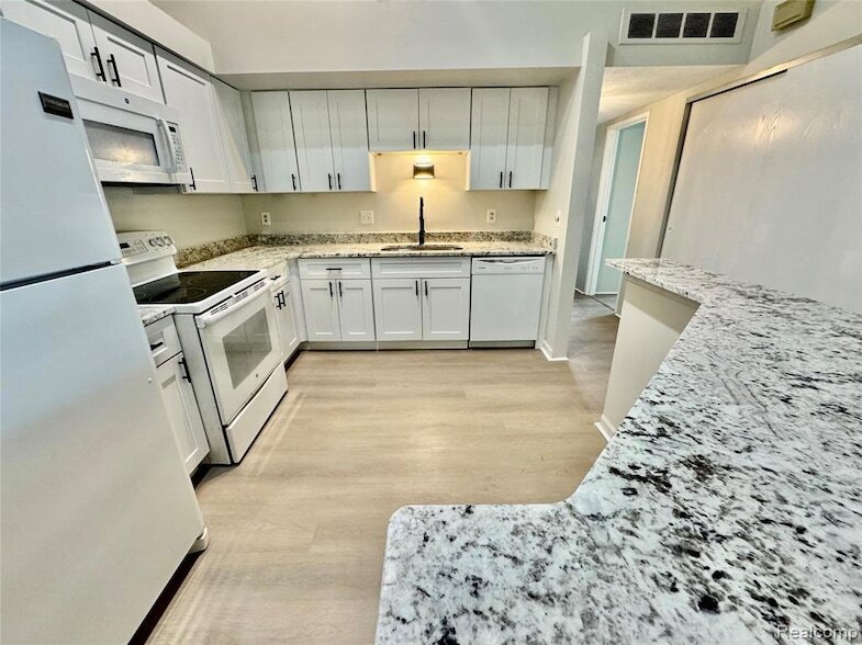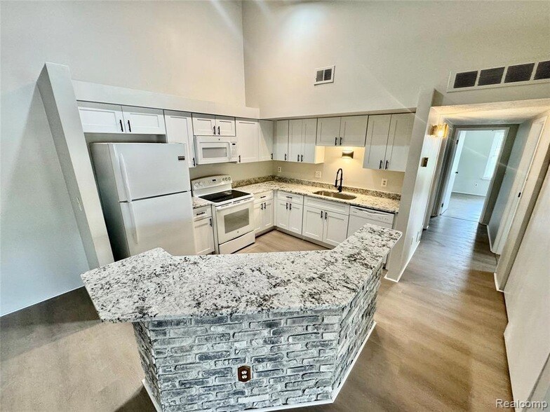 Welcome to your dream home! This stunning 2 Bedroom, 2 Bathroom condo offers the perfect blend of comfort and style. Located in highly desirable Northville, this condo features 1,213 square feet of Spacious living area that's painted neutrally and offers newer Luxury Vinyl Flooring throughout! New Open Kitchen with new Cabinets, Granite Counters & Flooring plus an island / breakfast bar perfect for entertaining all updated in 2024! Vaulted ceilings flow through the Kitchen, Dining, Living and Den area! Primary Bedroom Suite with walk in closet and en-suite Bathroom with walk in shower. Second Bedroom has a full bath directly across the hall. Both Bathrooms have updates including new Vanities, sinks & Decor! Full size Laundry in unit for your convenience as well! Large private covered Balcony just off the Den / Nook area ideal for your morning coffee or outside dining. Assigned Carport included. Community Pool & Clubhouse for your use as well!! Available Mid October.