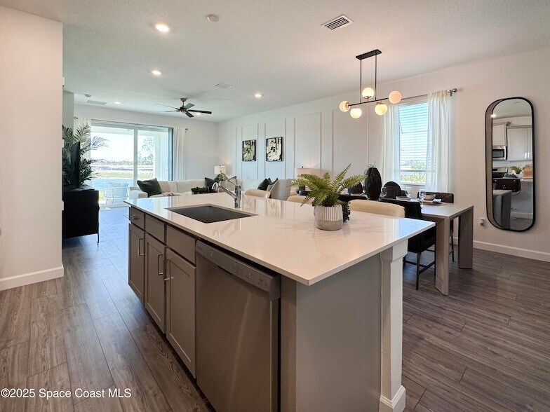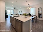 This spacious two-story home features an open-concept layout shared between the kitchen, dining and living room to promote effortless transitions between spaces. A back covered patio is ready for outdoor leisure. The comfortable owner's suite is tucked on the first floor for added privacy, while the top floor hosts four secondary bedrooms and a large loft area. This home features impact windows, paver driveways/walkways, quartz countertops in the kitchen and baths, crown molding in main living area, ceramic tile throughout 1st floor main living areas, grey shaker style cabinets with crown molding, faux blinds on windows, a covered lanai, and so much more. Prices, dimensions and features may vary and are subject to change. Photos are for illustrative purposes only.