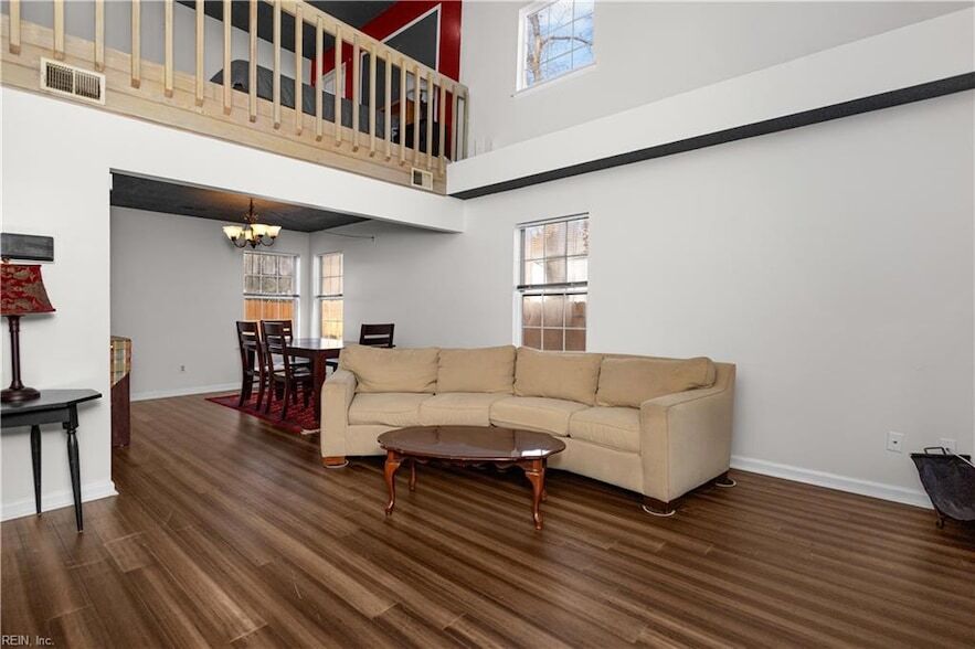 This Move In Ready Traditional detached end unit is Fully Furnished minutes from Fort Eustis! 2 Bedroom with a Loft acting like a 3rd Bedroom with 2 full bath. One on each floor. Loft Bedroom overlooks a cozy family room w/fireplace. Fenced rear yard. Bamboo Floors throughout the first floor.