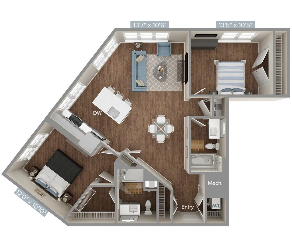 2 Beds, 2 Baths, 1168 sq ftAvailable Dec 4Largest 2 BedroomThis is the largest 2 Bedroom at this PropertyAvailability Details