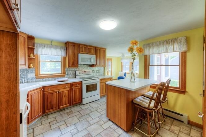 Property Id: 2380507 Front living room with a bow window plus a formal dining room, both featuring hardwood floors. The first floor den was once the third bedroom and could easily be converted back if needed with simply adding a door. The kitchen with cherry cabinets, breakfast island and pantry closet opens to the sun room, accented with a glass door to the deck and patio overlooking the large rear yard with a storage barn. The first floor bath with a tile floor offers a walk-in shower. Both bedrooms on the second level are 20' in length, very generous in size and offering dual closets.