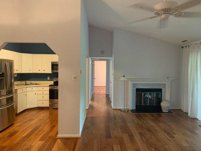 Property Id: 2185504 Top floor 2 bedroom, 2 bath condo in the quiet Loveton Farms community! Minutes from Wegman's, restaurants, dry cleaners, cinema, schools and I-83. Close to Oregon Ridge, the NCR Trail, and a short distance to Towson University! You will love it here! This bright and open 3rd floor condo has beautiful vaulted ceilings, hardwood flooring throughout common areas and master bedroom, an electric fireplace, installed curtains for every window area, and two different sliding glass doors out to a lovely balcony. The kitchen has been opened up to the dining room (many units in this community have closed kitchen areas); it features newer stainless steel appliances, a built-in microwave, ample cabinets, and a ceiling fan. Two bedrooms (smaller bedroom is carpeted); each bedroom has owner-installed storage/drawers. Two full baths (one shower, one bathtub/shower), a wonderful “bonus” front room that can be an office or den, that also opens to the balcony. Lots of natural sunlight flows through!