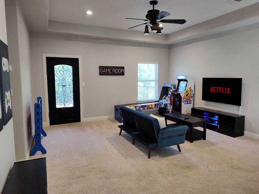Feel at home in this 6-bedroom, 7.5-bath home, the ultimate Shady Shores escape perfect for families or groups. This beautifully designed home features a chef’s kitchen fully stocked with cookware, dishes, and essentials, high-end stainless steel appliances, a large refrigerator, ample cabinetry, granite countertops, and a spacious island with high-top seating. The living room includes a smart TV, a large plush sectional sofa, an indoor fireplace, a coffee table, cozy decor, a ceiling fan, and an open concept layout connecting the kitchen and dining areas. Enjoy direct lake access with kayaks, paddleboards, and life jackets, a private hot tub, a fire pit, a BBQ grill, outdoor dining, and patio seating. For family-friendly stays, a Pack n’ Play and high chair are available. There are also two washer/dryers available for use. Enjoy the brand-new in-ground heated pool for an additional $125 per night. We recommend heating the pool between October and May each year and require at least a 3-day notice before your arrival if you'd like the pool heated. The pool must be heated for the entirety of your stay. Parking is available in the driveway for a maximum of 4 cars, with 2 additional spots available in the garage. Located in a peaceful neighborhood near the lake and close to top attractions, shopping, and dining, it’s the perfect balance of retreat and convenience. Nearby attractions include Lake Park at Lewisville Lake, DRT Transportation System, Hidden Cove Park & Marina, Free Play Denton, Cinemark Denton 14, Hawaiian Falls, AT&T Stadium, Globe Life Field, American Airlines Center, and Texas Motor Speedway. Dining and shopping options are available in Lake Dallas, Corinth, and Highland Village. The primary guest must be at least 25 years of age to book this property. Check-in is at 4 pm, and check-out is at 10 am. The minimum age for check-in is 21 years old. Absolutely no parties or gatherings over the max occupancy are allowed. No pets and no smoking are permitted. No commercial photography is allowed. Quiet hours are between 10 pm and 7 am. Street parking is strictly prohibited, and vehicles parked in violation may be subject to tickets or citations. Registration Number: 24-0119 [SI]