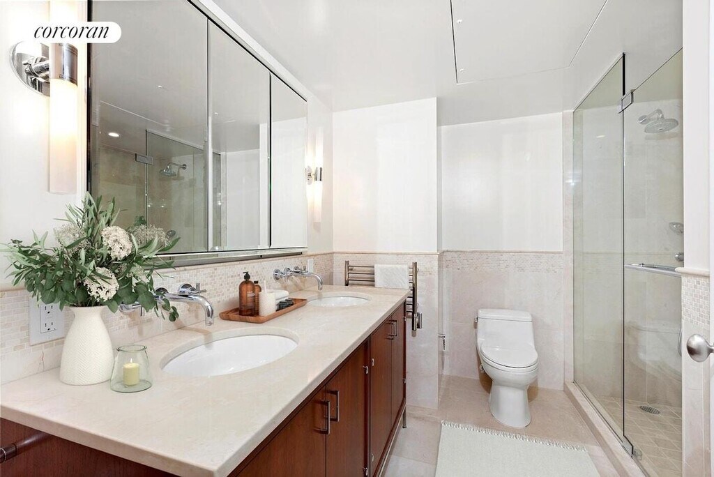 Expansive Bright two bedroom, two bath with open views and outdoor space residence at the prestigious Manhattan House. Spacious Corner living room with South and Eastern exposures, great for entertaining. Open windowed chef's kitchen featuring a Viking stainless steel refrigerator, dishwasher, stove and wine cooler. Split well proportioned bedrooms. Huge master bedroom with a sitting area, office and large walk in closet. The luxurious Master bathroom boasts Sebastian Cream marble radiant heat floors and double sink. Solid Oak Plank Flooring and electric shades throughout. Washer and dryer in unit.The Manhattan House is a luxury landmark condominium with 24H doorman, concierge, private gardens and on-site valet parking services.The Rooftop Club features over 10,000SF including an indoor resident lounge, rooftop terrace, Exhale Mind Body Spa & Fitness club and yoga studio. Additional amenities are a playroom and bicycle storage.