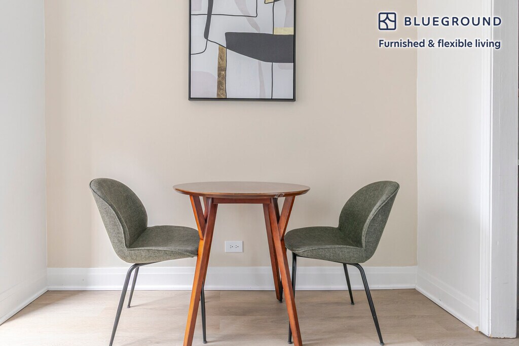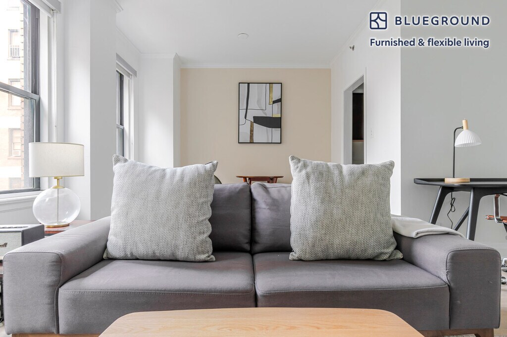 Show up and start living from day one in Chicago with this charming one bedroom Blueground apartment. You’ll love coming home to this thoughtfully furnished, beautifully designed, and fully equipped Streeterville home. (ID #CHI1390) The advertised rate of $2,360/month is the lowest available price, based on a 12 month(s) stay with a move-in date of March 27, 2026. Rates vary depending on the duration of stay, season, and other parameters. For exact pricing and additional pricing components, please visit our website and enter your desired move-in and move-out dates. The rate is applicable when billed upfront; it can be higher if billed in multiple payments. Brokers are welcome to reach out. Were you looking for an unfurnished lease? Try Blueground instead and upgrade from unfurnished to furnished living: - Furnished at rates comparable to unfurnished - No setup or furniture costs - save thousands - Move-in ready - save time, just bring your suitcase Designed with you in mind As with any Blueground apartment, you’ll find a thoughtfully designed space complete with beautiful furniture and a fully equipped kitchen in this one bedroom property. And, thanks to our superior quality mattresses, luxury linens, and towels, you can relax knowing you’ll always feel comfortably at home. When you’re ready for some fun, you can take in the Chicago vibes or bring the entertainment to you with the premium wireless speaker or smart TV. Sleeping arrangements Queen Bed, 63in/160cm Amenities Building amenities unique to this one bedroom apartment include an on-site: - Doorman - Elevator - Lounge - Pets allowed Arrival and ongoing support The entire apartment is yours to enjoy! Throughout your stay, you’ll have access to our Client Experience team through the Blueground App. You can schedule additional cleanings, submit maintenance requests, and view our neighborhood recommendations with just a few taps. We’ll share all details upon confirmation of your stay. Ideally Located This furnished rental is located in Streeterville, only a 5 minute walk from The Loop. One of the fastest-developing neighborhoods in Chicago, Streeterville extends out into Lake Michigan and attracts a blend of young professionals, students, and tourists. A plethora of amenities and activities exist for every lifestyle. From Navy Pier activities to luxury shopping on Michigan Avenue, it is a walkable community with easy access to entertainment. Other things to note Building amenities may have an extra cost. This Blueground apartment has flexible lease options, allowing you to book it for one month, a year, or more. Pets are welcome, though weight limits and breed restrictions apply and may incur fees. We take great pride in ensuring every photo displayed is shot in our own units with our actual furnishings. That said, we regularly refresh our decor and furniture arrangement, which may differ from what’s pictured. [SI]