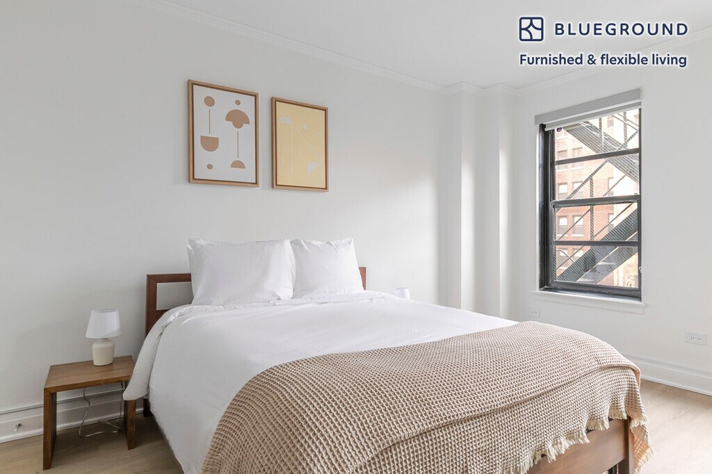 Show up and start living from day one in Chicago with this charming one bedroom Blueground apartment. You’ll love coming home to this thoughtfully furnished, beautifully designed, and fully equipped Streeterville home. (ID #CHI1390) The advertised rate of $2,510/month is the lowest available price, based on a 12 month(s) stay with a move-in date of March 27, 2026. Rates vary depending on the duration of stay, season, and other parameters. For exact pricing and additional pricing components, please visit our website and enter your desired move-in and move-out dates. The rate is applicable when billed upfront; it can be higher if billed in multiple payments. Brokers are welcome to reach out. Were you looking for an unfurnished lease? Try Blueground instead and upgrade from unfurnished to furnished living: - Furnished at rates comparable to unfurnished - No setup or furniture costs - save thousands - Move-in ready - save time, just bring your suitcase Designed with you in mind As with any Blueground apartment, you’ll find a thoughtfully designed space complete with beautiful furniture and a fully equipped kitchen in this one bedroom property. And, thanks to our superior quality mattresses, fully stocked linens, and towels, you can relax knowing you’ll always feel comfortably at home. When you’re ready for some fun, you can take in the Chicago vibes or bring the entertainment to you with the premium wireless speaker or smart TV. Sleeping arrangements Queen Bed, 63in/160cm Amenities Building amenities unique to this one bedroom apartment include an on-site: - Doorman - Elevator - Lounge - Pets allowed Arrival and ongoing support The entire apartment is yours to enjoy! Throughout your stay, you’ll have access to our Client Experience team through the Blueground App. You can schedule additional cleanings, submit maintenance requests, and view our neighborhood recommendations with just a few taps. We’ll share all details upon confirmation of your stay. Ideally Located This furnished rental is located in Streeterville, only a 5 minute walk from The Loop. One of the fastest-developing neighborhoods in Chicago, Streeterville extends out into Lake Michigan and attracts a blend of young professionals, students, and tourists. A plethora of amenities and activities exist for every lifestyle. From Navy Pier activities to luxury shopping on Michigan Avenue, it is a walkable community with easy access to entertainment. Other things to note Building amenities may have an extra cost. This Blueground apartment has flexible lease options, allowing you to book it for one month, a year, or more. Pets are welcome, though weight limits and breed restrictions apply and may incur fees. We take great pride in ensuring every photo displayed is shot in our own units with our actual furnishings. That said, we regularly refresh our decor and furniture arrangement, which may differ from what’s pictured. [SI]