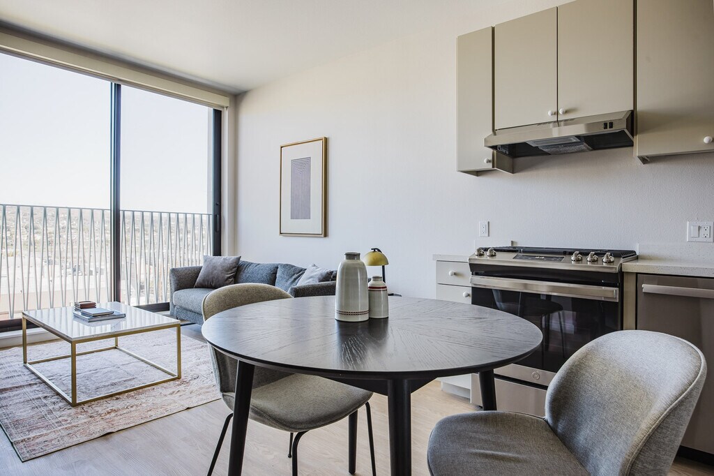 Similar space, but different These photos are of a similar space and style to this apartment. They’re intended to give you a sense of Blueground’s design style. Exact furniture and layout will be different. Be the first to rent! Show up and start living from day one in Los Angeles with this cozy one bedroom Blueground apartment. You’ll love coming home to this thoughtfully furnished, beautifully designed, and fully equipped Chinatown home. (ID #LAX1432) The advertised rate of $2,220/month is the lowest available price, based on a 1 month(s) and 29 day(s) stay with a move-in date of April 8, 2026. If you’re looking for a 1-year stay, the rate is $2,520/month. Rates vary depending on the duration of stay, season, and other parameters. For exact pricing and additional pricing components, please visit our website and enter your desired move-in and move-out dates. The rate is applicable when billed upfront; it can be higher if billed in multiple payments. Brokers are welcome to reach out. Were you looking for an unfurnished lease? Try Blueground instead and upgrade from unfurnished to furnished living: - Furnished at rates comparable to unfurnished - No setup or furniture costs - save thousands - Move-in ready - save time, just bring your suitcase Designed with you in mind Gorgeous furniture, fully equipped kitchen, smart TV, and a premium wireless speaker are just a few of the amenities you’ll find inside this one bedroom apartment. Ideally located in Los Angeles, you’ll find a lot to love outside as well. When you’re ready to relax, you’ll be happy to discover every Blueground bedroom comes with superior quality mattresses, fully stocked linens, and cozy towels. We handle everything so you can simply show up and start living. This apartment also offers in-apartment laundry. Sleeping arrangements Queen Bed, 63in/160cm Amenities Building amenities unique to this one bedroom apartment include an on-site: - Dryer - Elevator - Washing machine - Pets allowed Arrival and ongoing support The entire apartment is yours to enjoy! Throughout your stay, you’ll have access to our Client Experience team through the Blueground App. You can schedule additional cleanings, submit maintenance requests, and view our neighborhood recommendations with just a few taps. We’ll share all details upon confirmation of your stay. Other things to note Photos are from a similar property. This Blueground apartment has flexible lease options, allowing you to book it for one month, a year, or more. Pets are welcome, though weight limits and breed restrictions apply and may incur fees. [SI]