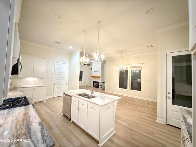 NOW TAKING APPLICATIONS! Homes interior was just painted and new pictures to come. This home offers 3 bedrooms, 2 full bathrooms and an office with a total of 1,933 square feet of living space. Broussard's Sabal Palm Subdivision is positioned with nearby access roads to Lafayette, Youngsville and all places in Broussard. Heath Home Builders did an excellent job with the full design of this home, starting with the curb appeal. Walking up toward the front of the home, view the natural wood beams and paint scheme, its breathtaking. An open floor plan with considerable amounts of space provided for each room. The living area has a beautiful, coffered ceiling. The kitchen includes custom cabinetry, slab granite, stainless appliances, designer lighting and fixtures. The Primary Ensuite offers trey ceiling, custom tiled shower, dual sinks and extra-large walk-in closet. Bedrooms number 2 & 3 share the second full bathroom. The fully privacy fenced backyard has a large grassy area and a back patio with fireplace, grill, refrigerator and a great deal of seating space.
