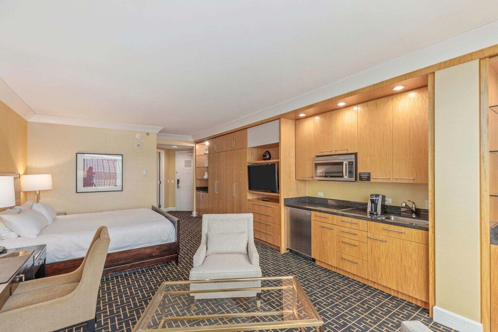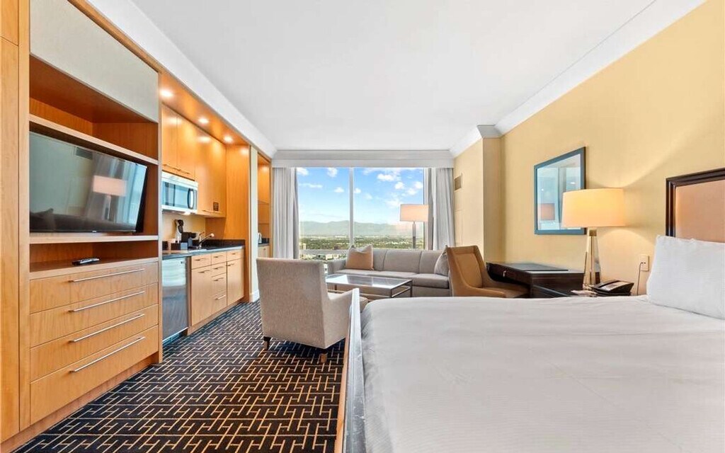 Indulge in luxury at this Las Vegas apartment, located within the iconic Trump International Hotel. Enjoy stunning city views from this modern suite, complete with a fully equipped kitchen, comfortable living spaces, and resort-style amenities. Benefit from easy access to a sparkling pool, a state-of-the-art gym, and on-site dining. Located steps from the Fashion Show Mall and near the Las Vegas Strip, Wynn, Resorts World, and Treasure Island, this apartment puts you at the center of world-class shopping, dining, and entertainment. Indulge in the refined comfort of this spacious studio suite, meticulously designed for your utmost relaxation and convenience. The suite boasts a luxurious king-size bed and a cozy sofa, creating a welcoming atmosphere for unwinding. The open-concept living area provides ample space for both relaxation and work, ensuring a seamless experience. A $65 daily resort fee and a $135 cleaning fee are payable to the host before check-in. The resort fee includes pool and gym access, daily housekeeping, fresh towels, linens, and free coffee and water daily. Pets under 25 lbs are allowed with a $200 fee paid to the host and a $50 refundable pet deposit paid at the front desk. Complimentary valet parking is available. On-site dining options include a restaurant, bar/lounge, and poolside bar, with breakfast available for USD 16–26. Located steps from the Fashion Show Mall and near the Las Vegas Strip, Wynn, Resorts World, and Treasure Island, this apartment puts you at the center of world-class shopping, dining, and entertainment. Check-in is at 4:00 PM and check-out is at 11:00 AM. Guests must be 21 or older to check in without a guardian. This property is independently managed and not affiliated with or endorsed by Trump International Hotel & Tower Las Vegas or Donald J. Trump. The open-concept living area provides ample space for both relaxation and work, ensuring a seamless experience.