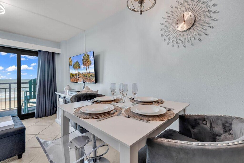 Welcome to your oceanfront getaway in Myrtle Beach! Feel at home in this bright and inviting condo, offering the perfect balance of comfort and convenience. Step out onto your private balcony and take in sweeping views of the Atlantic Ocean. Inside, you’ll find a fully equipped kitchen, cozy living area, air conditioning, and heating. Guests can also enjoy the fitness room, game room, indoor shared sauna, and shared hot tub. Free parking is available at the property for a maximum of two cars in front of the building and in a parking garage located on Cassandra Lane. Guests will need to retrieve the keycard from the room in order to access the parking garage. This oceanfront property puts you just steps from the beach and minutes from Myrtle Beach’s top attractions, dining, shopping, and entertainment. The Myrtle Beach Boardwalk, Sky Wheel Myrtle Beach, Alabama Theatre, Tanger Outlet Mall, Ripley’s Aquarium, and the Myrtle Beach Convention Center are all nearby. Smoking is not allowed in the unit or on the balcony. Any violation of the smoking policy will result in a $250 fine, in addition to a charge for any cleaning costs. No pets are allowed, and any violation of this policy will incur a $200 fine. House parties and illegal substances are strictly prohibited and grounds for immediate eviction. You must be at least 21 years old to book this property. Leaving the unit later than the check-out time will incur a late check-out penalty starting from $500. If you exceed the maximum allowed number of occupants, a penalty of $100 will be applied. For same-day late check-ins, you need to get approval before booking. A state identification card or driver's license copy will be requested upon booking. [SI]