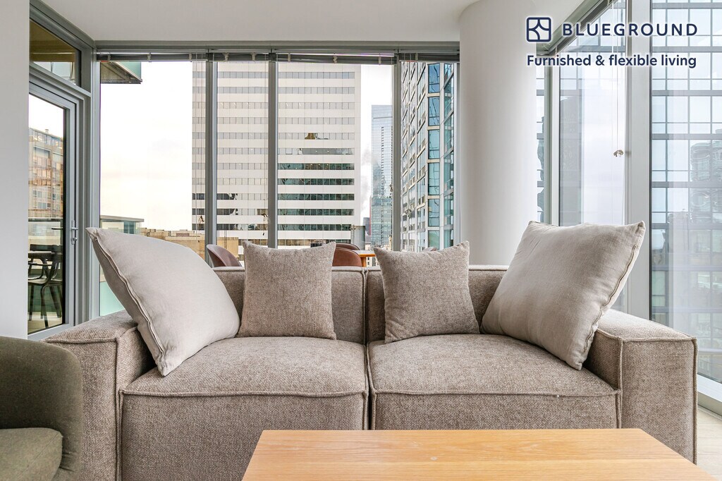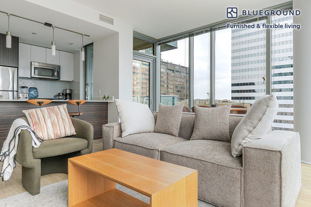 Feel at home wherever you choose to live with Blueground. You’ll love this stylish The Loop furnished two bedroom apartment with its modern decor, fully equipped kitchen, and exquisite living room. Ideally located, you’re close to all the best that Chicago has to offer! (ID #CHI1392) The advertised rate of $4,850/month is the lowest available price, based on a 12 month(s) stay with a move-in date of March 30, 2026. Rates vary depending on the duration of stay, season, and other parameters. For exact pricing and additional pricing components, please visit our website and enter your desired move-in and move-out dates. The rate is applicable when billed upfront; it can be higher if billed in multiple payments. Brokers are welcome to reach out. Were you looking for an unfurnished lease? Try Blueground instead and upgrade from unfurnished to furnished living: - Furnished at rates comparable to unfurnished - No setup or furniture costs - save thousands - Move-in ready - save time, just bring your suitcase Designed with you in mind As with any Blueground apartment, you’ll find a thoughtfully designed space complete with beautiful furniture and a fully equipped kitchen in this two bedroom property. And, thanks to our superior quality mattresses, luxury linens, and towels, you can relax knowing you’ll always feel comfortably at home. When you’re ready for some fun, you can take in the Chicago vibes or bring the entertainment to you with the premium wireless speaker or smart TV. This apartment also offers in-apartment laundry. Sleeping arrangements King Bed, 70.8in/180cm Queen Bed, 63in/160cm Amenities Building amenities unique to this two bedroom apartment include an on-site: - BBQ Area - Doorman - Dryer - Elevator - Game room - Swimming pool - Washing machine - Lounge - Pets allowed Arrival and ongoing support The entire apartment is yours to enjoy! Throughout your stay, you’ll have access to our Client Experience team through the Blueground App. You can schedule additional cleanings, submit maintenance requests, and view our neighborhood recommendations with just a few taps. We’ll share all details upon confirmation of your stay. Ideally Located This furnished rental is situated in the most dynamic and convenient place to live in Chicago, The Loop. With its endless shopping, fine dining, stunning park, river and lake views, and entertainment opportunities, everything is possible at a moment’s notice. The area is a cultural getaway for professionals and students, who can combine work with pleasure. Discover landmark buildings like the Willis Tower and The Art Institute of Chicago. Millenium Park, near Lake Michigan, is always worth a visit. The Loop is within reach of accessible transportation, offering non-stop public transit, buses, and taxis. Union Station is approximately a 10 minute train ride. Other things to note Building amenities may have an extra cost. This Blueground apartment has flexible lease options, allowing you to book it for one month, a year, or more. Pets are welcome, though weight limits and breed restrictions apply and may incur fees. We take great pride in ensuring every photo displayed is shot in our own units with our actual furnishings. That said, we regularly refresh our decor and furniture arrangement, which may differ from what’s pictured. [SI]