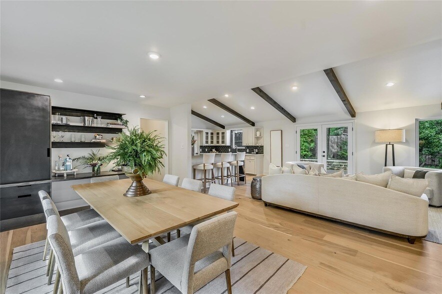 Discover this beautifully updated 4-bedroom, 3-bathroom home for rent, perfectly located in the highly sought-after Westlake neighborhood. This is your opportunity to live in a top-rated community within the acclaimed Eanes ISD.This one-level home offers a luxurious layout with high beamed ceilings and stunning European white oak hardwood floors throughout. The living and dining areas connect seamlessly, featuring a beautiful modern fireplace and French doors that lead to the back patio. A convenient built-in desk/bar area is found in the dining room, while the kitchen includes new Quartz countertops, a custom-made steel bar, and a new induction cooktop.Enjoy the privacy of a dedicated primary suite set on its own wing, complete with a generous walk-in closet. The attached, spa-like bathroom is a luxurious retreat, featuring a Carrara marble walk-in shower, a free-standing soaking tub, two vanities, and excellent storage. Three additional bedrooms reside on the opposite wing, each offering ample space and privacy. Two of the rooms are complete with walk-in closets, while one provides the luxury of a private en-suite bathroom. A dedicated mud room with a new washer/dryer provides added convenience.The house sits on a .35-acre lot, with the backyard being fully fenced and featuring a large patio and a shed. This home offers unbeatable walkability to shopping and dining as well as top-rated schools, including Eanes Elementary, Hill Country Middle School, and Westlake High School. It's also just minutes from downtown Austin, Lady Bird Lake, and Zilker Park.