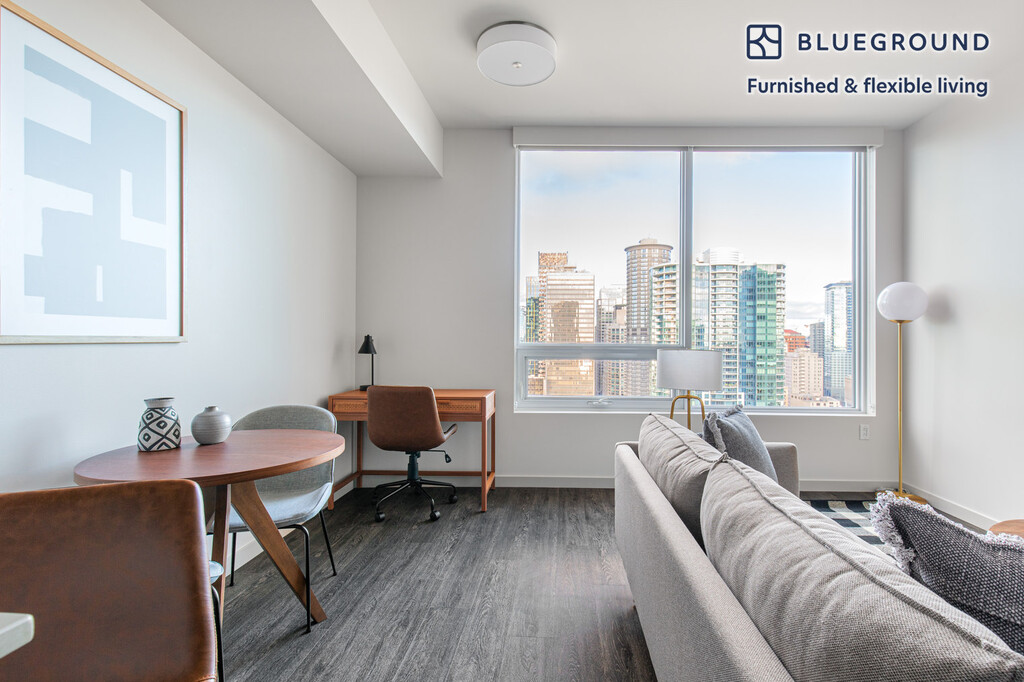 Ofrecemos precios personalizados por cualquier duración. Las tarifas pueden variar según las fechas exactas de mudanza. La tarifa para esta casa comienza en $2,650* / mes. Visita nuestro sitio web e ingresa tus fechas de estadía para ver los precios actualizados para tu reserva específica. *El precio cotizado es: (1) según la mudanza en el primer día en que el apartamento está disponible, (2) aplica solo si se factura por adelantado, puede ser más alto si se factura en múltiples pagos, (3) exclusivo de cualquier impuesto o servicio público. Siéntete como en casa dondequiera que elijas vivir con Blueground. Le encantará este elegante apartamento tipo estudio amueblado en Belltown con decoración moderna, cocina totalmente equipada y una hermosa sala de estar con una magnífica vista desde una de las plantas más altas del hotel. Con una ubicación ideal, está cerca de todo lo mejor que Seattle tiene para ofrecer. (ID #SEA70) Diseñado pensando en usted Al igual que con cualquier apartamento Blueground, encontrará un espacio cuidadosamente diseñado con hermosos muebles y una cocina totalmente equipada en esta propiedad tipo estudio. Además, gracias a nuestros colchones, sábanas y toallas de primera calidad, puede relajarse sabiendo que siempre se sentirá como en casa. Cuando esté listo para divertirse, puede disfrutar del ambiente de Seattle o traerle el entretenimiento con el altavoz inalámbrico premium o el televisor inteligente. Este apartamento también ofrece lavandería en el apartamento. Alojamiento para dormir con cama Queen, comodidades de 160 cm Los servicios del edificio exclusivos de este estudio incluyen: - Portero - Secador - Ascensor - Gimnasio - Lavadora - Estacionamiento - Se permiten mascotas - Barbacoa en la azotea ¡ Llega y asistencia continua ! ¡Todo el apartamento es suyo! Un miembro del equipo de Blueground te dará la bienvenida personalmente o te dará instrucciones de auto check-in. Durante su estancia, tendrá acceso a nuestro equipo de experiencia del cliente a través de la aplicación Blueground. Puedes programar limpiezas adicionales, enviar solicitudes de mantenimiento y ver las recomendaciones de nuestro vecindario con solo unos pocos toques. Compartiremos todos los detalles tras la confirmación de su estancia. Con una ubicación ideal Este apartamento amueblado se encuentra en Belltown, ideal para caminar. Con una envidiable proximidad al agua, también se encontrará a corta distancia de la sede central del Amazonas, Pike Place, Denny Triangle y Lower Queen Anne. Belltown cuenta con numerosos bares de sushi, java joints y opciones de vida nocturna que se concentran en las avenidas 1.a y 2.a. Conéctese con el resto de la ciudad con los autobuses locales, el South Lake Union Streetcar y los carriles para bicicletas protegidos de la zona. A los corredores les encantará comenzar a trotar en el Parque Olímpico de Esculturas mientras el sendero Elliott Bay se extiende hacia el norte. Otras cosas que hay que tener en cuenta Los servicios del edificio pueden tener un costo adicional. Este apartamento de Blueground tiene opciones de arrendamiento flexibles, lo que te permite reservarlo por un mes, un año o más. Las mascotas son bienvenidas, aunque se aplican límites de peso y restricciones de raza y pueden incurrir en cargos. El estacionamiento se ofrece según la disponibilidad y está sujeto a un cargo. Nos enorgullecemos de asegurarnos de que cada foto que se muestre se tome en nuestros propios apartamentos con nuestro mobiliario real. Dicho esto, actualizamos regularmente nuestra decoración y disposición de muebles, que pueden diferir de lo que se muestra en la imagen.