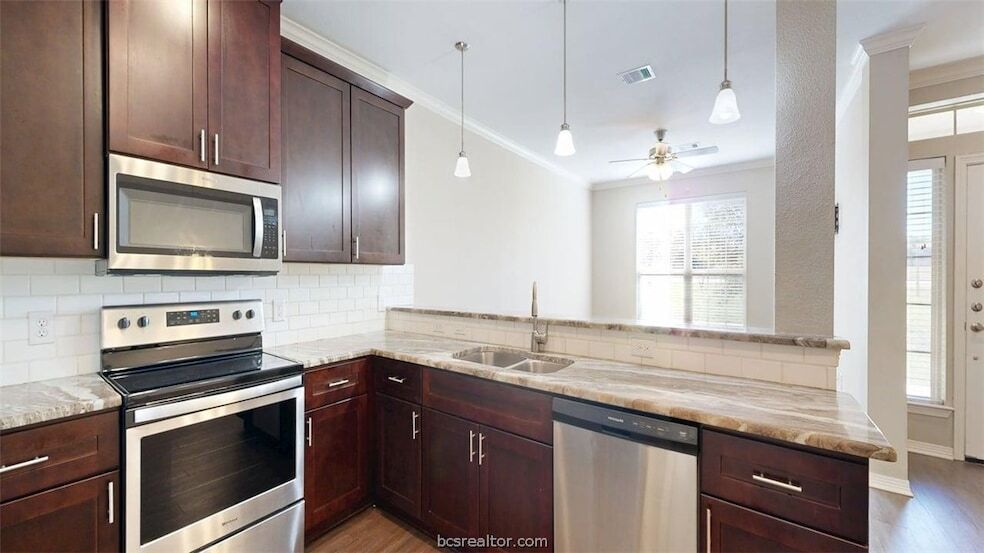 AVAILABLE FOR A QUICK MOVE-IN! This spacious 3-bedroom, 3.5-bathroom townhome is situated in a highly desirable location along Harvey Mitchell Parkway. Upon entering, you'll be greeted by an open floor plan and a soft, inviting color scheme that makes the interior both appealing and functional. The kitchen is a true highlight, featuring beautiful granite countertops, an eat-up bar, soft-close cabinetry, and all stainless steel appliances. The large living room is brightened by expansive windows, creating a welcoming atmosphere. Each bedroom is thoughtfully zoned with its own thermostat and includes a full, private bathroom with stunning granite finishes and generous walk-in closets. The downstairs utility room offers convenient storage space and is equipped with a front-load washer and dryer behind a pocket door. With easy access to shopping, Texas A&M University, and a nearby bus stop, this townhome blends comfort with a prime location. Conveniently close to shopping, Texas A&M University, and a nearby bus stop. A 3D immersive visual tour of this home created by Matterport is available for you to view. Ask your agent for a link. All leases participate in the Latchel Resident Benefit package. The additional fee for this package is $40 per month.