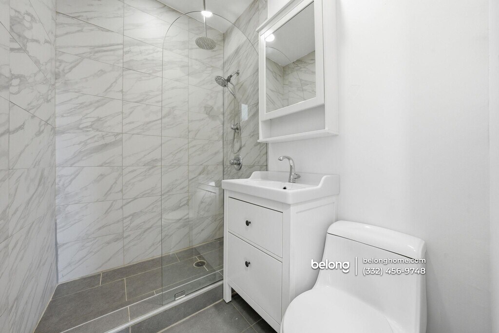 Tucked into a classic Brooklyn brick building, this renovated top-floor two-bedroom apartment in East Flatbush delivers 700 square feet of bright, modern living in a well-connected residential neighborhood. A charming tree-lined block sets a welcoming tone just steps from transit, markets, and everyday essentials. Inside, the apartment feels fresh and airy, anchored by a thoughtfully updated kitchen featuring warm knotty pine cabinetry, a stylish farmhouse sink, stainless steel appliances, and a gas range. A skylight floods the space with natural daylight, giving the kitchen a cheerful, open feel that extends throughout the unit. Two comfortable bedrooms offer rich hardwood floors, ceiling fans, large windows, and generous closet space, providing peaceful retreats at the end of the day. Warm sunlight streams through oversized windows, highlighting the classic millwork and timeless interior finishes. The fully renovated bathroom is a true standout, showcasing floor-to-ceiling marble-style tile, a walk-in glass shower with rain showerhead, and a sleek modern vanity for a clean, spa-like feel. Set in a vibrant Brooklyn neighborhood with easy access to subway lines, parks, and the city beyond, this apartment blends classic prewar character with modern upgrades in a home that is ready to move right into, ideal for anyone seeking a stylish urban base in one of New York's most dynamic boroughs. *Our homes come as-is with all essentials in working order. Want upgrades? Request it through the Belong app, and our trusted pros will take care of the rest!