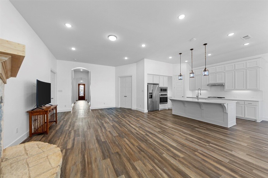 Glen Crossing in Celina Texas gives you the quiet comfort of suburban community living with all the conveniences of the Dallas Fort Worth metroplex well within commuting distance. This Highland Homes custom build has some unique features the owners chose as upgrades not only from a luxury aspect, but upgrades to enhance a practical and comfortable lifestyle. There are additional custom cabinets and drawers in the kitchen and master bath, a media room flex space that could be used as a gym or secondary family living space, a separate dining room for those holiday get togethers, and a dedicated office for your work from home convenience. LVP floors in the family and kitchen spaces are kid and pet friendly providing you years of worry free wear. There is a second bedroom off of the garage entrance with an en suite bath for multi generational living. There's an extra storage room across from the laundry to keep the kid's sports equipment, additional pantry space for those Costco runs, or use as a supply closet for your home business. 10 and 11 foot ceilings, 8 foot doors, the open concept living room and large eat in kitchen along with plenty of natural light give this home an expansiveness that feels just as big as you want it to. Rock wool insulation in the exterior and interior walls adds sound proofing and energy efficiency. A stone fireplace in the living room adds a rustic ambiance and will keep you warm and cozy during those chilly Texas icy winter breaks from the heat. The back patio is extended and plumbed for gas waiting for your designs on that outdoor living space you've always wanted in a back yard that doesn't have other homes built right up to your back fence. A community pool, dog park, fishing ponds, and a walk-able neighborhood provides you with ample options for your outdoor experiences. This beautiful property is move in ready and waiting for you to come and make new memories in your new home.