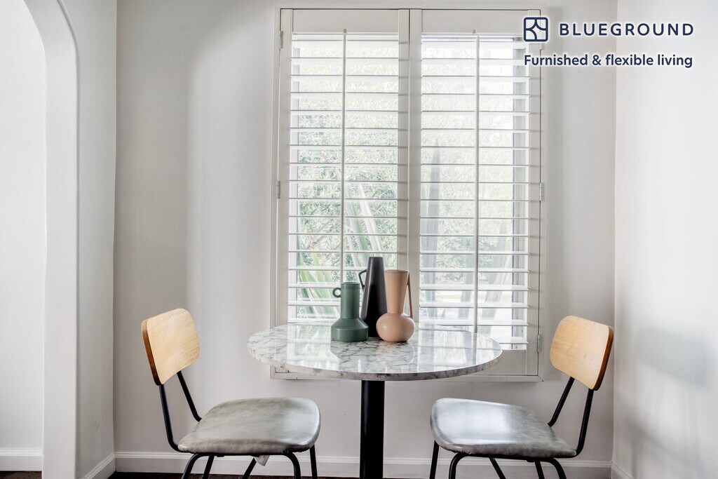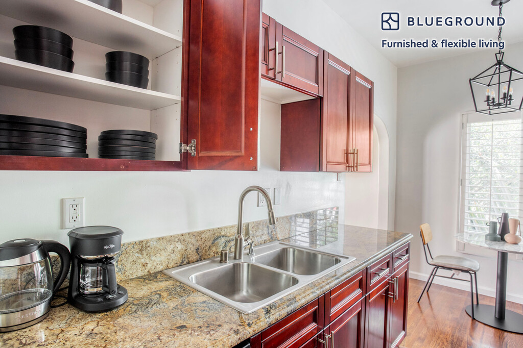 Show up and start living from day one in Beverly Hills with this sophisticated one bedroom Blueground apartment. You’ll love coming home to this thoughtfully furnished, beautifully designed, and fully equipped Beverly Hills home. (ID #LAX1218) The advertised rate of $3,020/month is the lowest available price, based on a 1 month(s) and 28 day(s) stay with a move-in date of January 1, 2028. If you’re looking for a 1-year stay, the rate is $3,320/month. Rates vary depending on the duration of stay, season, and other parameters. For exact pricing and additional pricing components, please visit our website and enter your desired move-in and move-out dates. The rate is applicable when billed upfront; it can be higher if billed in multiple payments. Brokers are welcome to reach out. Were you looking for an unfurnished lease? Try Blueground instead and upgrade from unfurnished to furnished living: - Furnished at rates comparable to unfurnished - No setup or furniture costs - save thousands - Move-in ready - save time, just bring your suitcase Designed with you in mind Thoughtfully designed with bespoke finishes, modern furnishings, and a fully equipped kitchen, you’ll enjoy that “I’m home” feeling with this Blueground apartment. Whether you’re lounging in your lovely living room streaming the latest and greatest entertainment on the smart TV or premium wireless speaker, or getting some well-earned rest on the superior quality mattress with luxury linens, you’ll fall in love with everything this Beverly Hills apartment has to offer. Sleeping arrangements King Bed, 70.8in/180cm Amenities Building amenities unique to this one bedroom apartment include an on-site: - Dryer in building - Washing machine in building Arrival and ongoing support The entire apartment is yours to enjoy! Throughout your stay, you’ll have access to our Client Experience team through the Blueground App. You can schedule additional cleanings, submit maintenance requests, and view our neighborhood recommendations with just a few taps. We’ll share all details upon confirmation of your stay. Ideally Located This furnished apartment is located in Beverly Hills. It's an upscale neighborhood that is home to many celebrities, luxury hotels and the famous Rodeo Drive shopping district. The star power here is palpable. To relax in an expansive green space, head to the Beverly Gardens, which is a park that stretches for 22 blocks along Santa Monica Boulevard. Next to similarly star-studded Bel Air and West Hollywood, this area has become a must-see destination. The Venice Boardwalk and LAX are both about 25 minutes away by car. Other things to note This Blueground apartment has flexible lease options, allowing you to book it for one month, a year, or more. Please keep in mind that this is a walk up building. We take great pride in ensuring every photo displayed is shot in our own units with our actual furnishings. That said, we regularly refresh our decor and furniture arrangement, which may differ from what’s pictured. [SI]