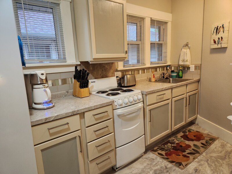 Property Id: 1299031 Adorable, newly remodeled one bedroom apartment decorated on a bird theme. Located in the desirable Avenues of Cheyenne. Close to everything: Downtown, the Air Force Base, the Capital, Medical Center, Frontier Park, airport, food and shopping. Self-contained older home, main floor unit is sunny, has a full kitchen, 3/4 bath, WiFi, dining table, loveseat, and work desk. Queen bedroom opens into living room through French doors. Off street parking, free shared laundry onsite. Very bright and airy. Front porch with table and chair. Completely self-contained. Wood floors can be squeaky. Shared free laundry in basement. Off street parking. Gazebo in fully fenced back yard. Very private. If you are bringing your own furniture this is NOT the place for you. Lease is month-to month, very flexible terms. Damage deposit includes cleaning costs. Background check - $25. Prefer quiet, respectful tenants. All utilities extra $185 per month.